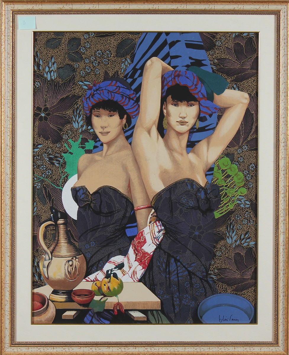 CIVITARESE GOFFREDO (n. 1936) Due donne. Serigrafia. Cm 90,00 x 70,00. Firma in basso a destra. Certificato di autenticità su fotografia a cura di Telemarket, Brescia.
