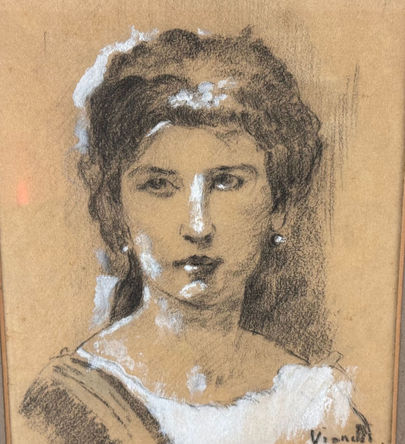 Disegno su carta, periodo XX secolo scuola Italiana, raffigurante Ritratto di donna. Dimensioni compreso cornice: 37x42 cm. Dimensioni interno cornice: 17x21 cm. Reca firma in basso a destra Iannelli. Opera in buone condizioni.