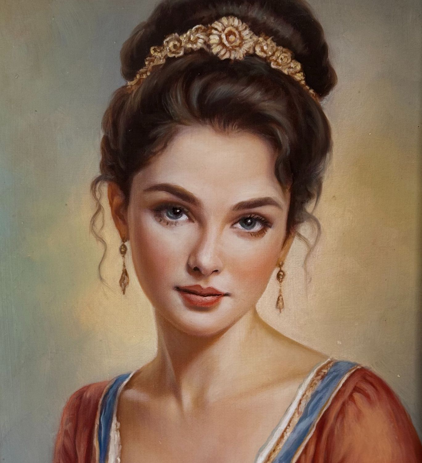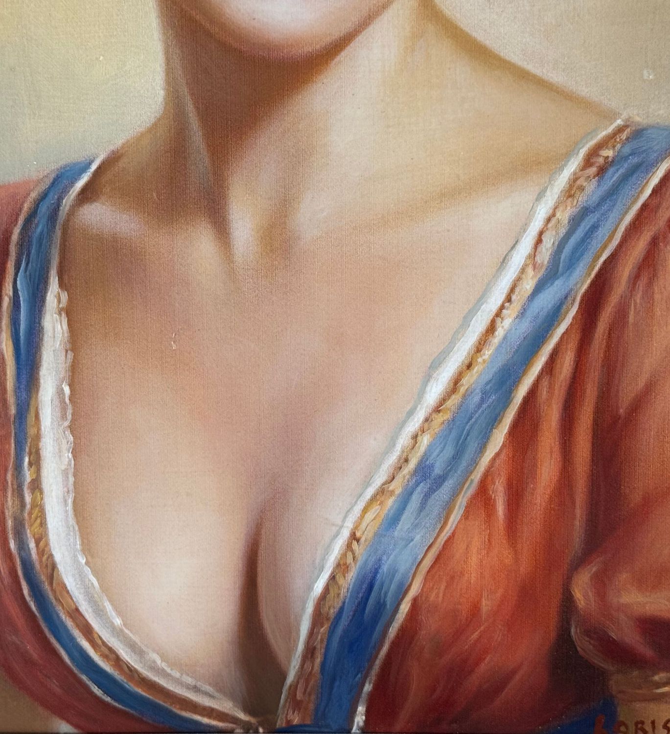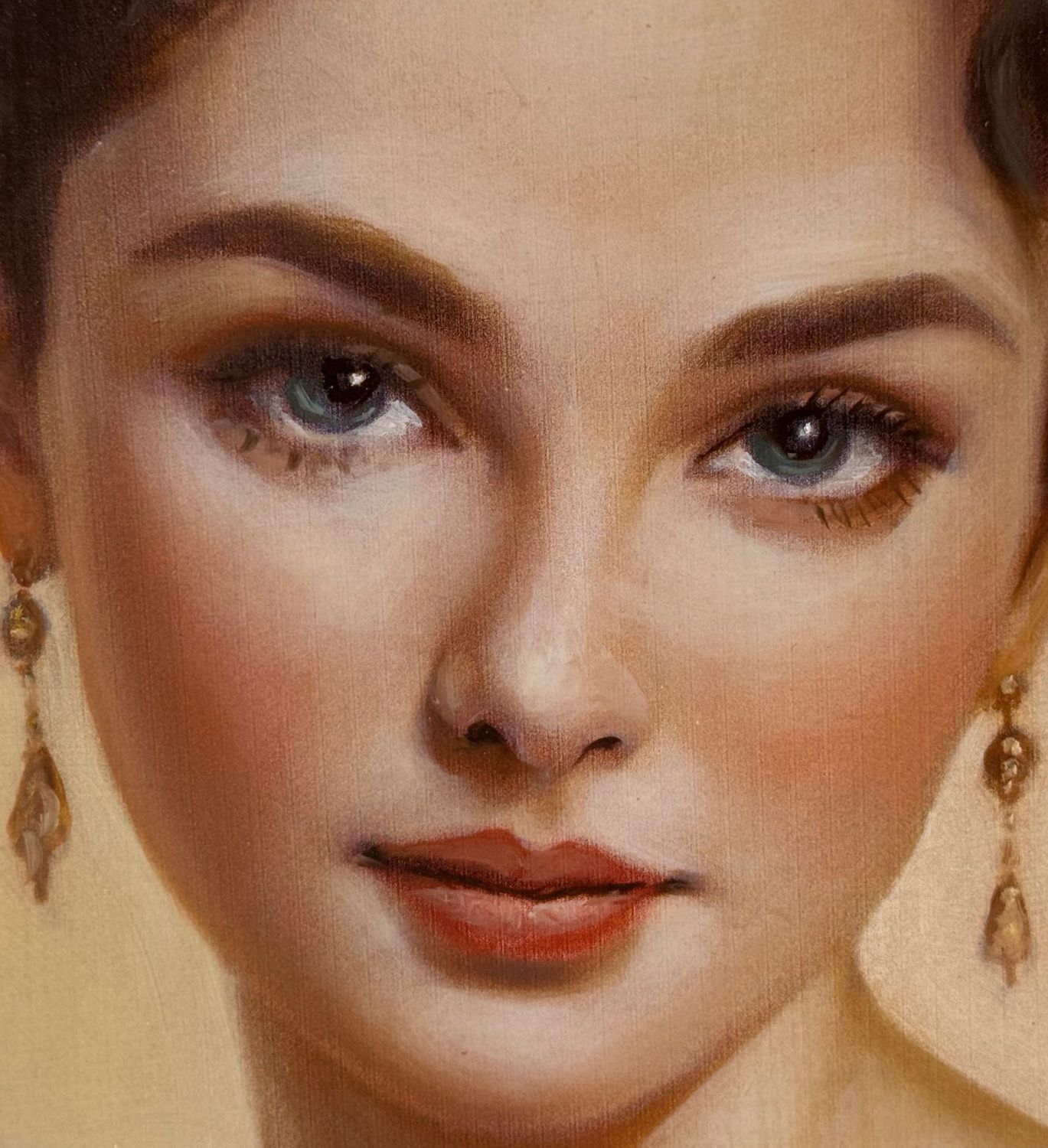 Dipinto olio su tela, periodo XX secolo scuola Italiana, raffigurante Elegante ritratto di donna. Dimensioni compreso cornice: 57x71 cm. Dimensioni interno cornice: 35x50 cm. Periodo 1960/70 Reca firma in basso a destra da artista non identificato. Opera in buone condizioni.