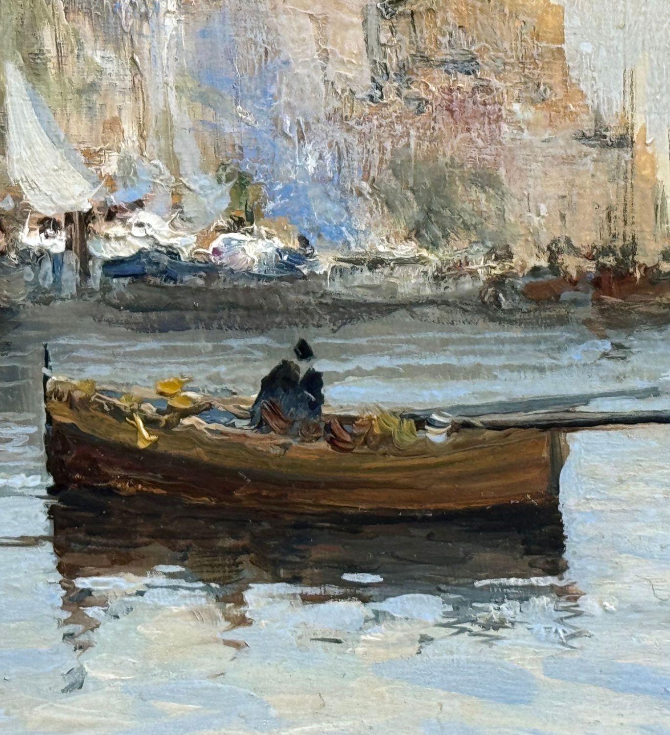 Dipinto olio su tavola, periodo XX secolo scuola italiana, raffigurante Marina partenopea. Dimensioni compreso cornice: 59x53 cm. Dimensioni interno cornice: 30x25 cm. Reca firma in basso a sinistra e timbro autentica sul retro da Eugenio Magno (Napoli 1944). Opera in buone condizioni.
