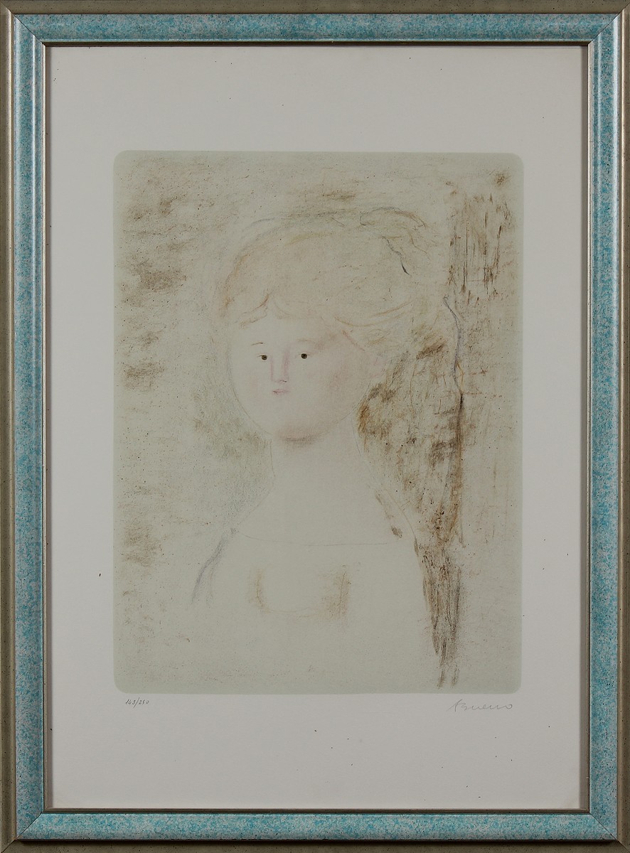 BUENO ANTONIO (1918 - 1985) Evanescenza. Litografia. Cm 50,00 x 70,00. 143/250. Tiratura e firma a matita in basso a destra. Autentica e certificato di provenienza a cura di Telemarket, Brescia. . Cornice presente
