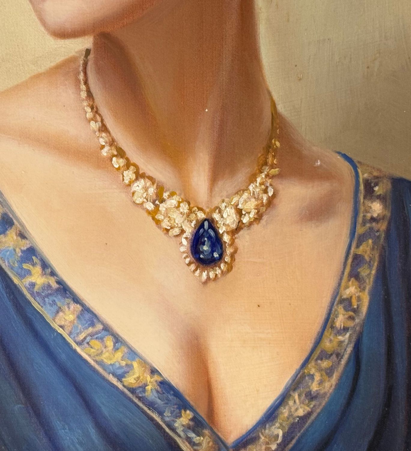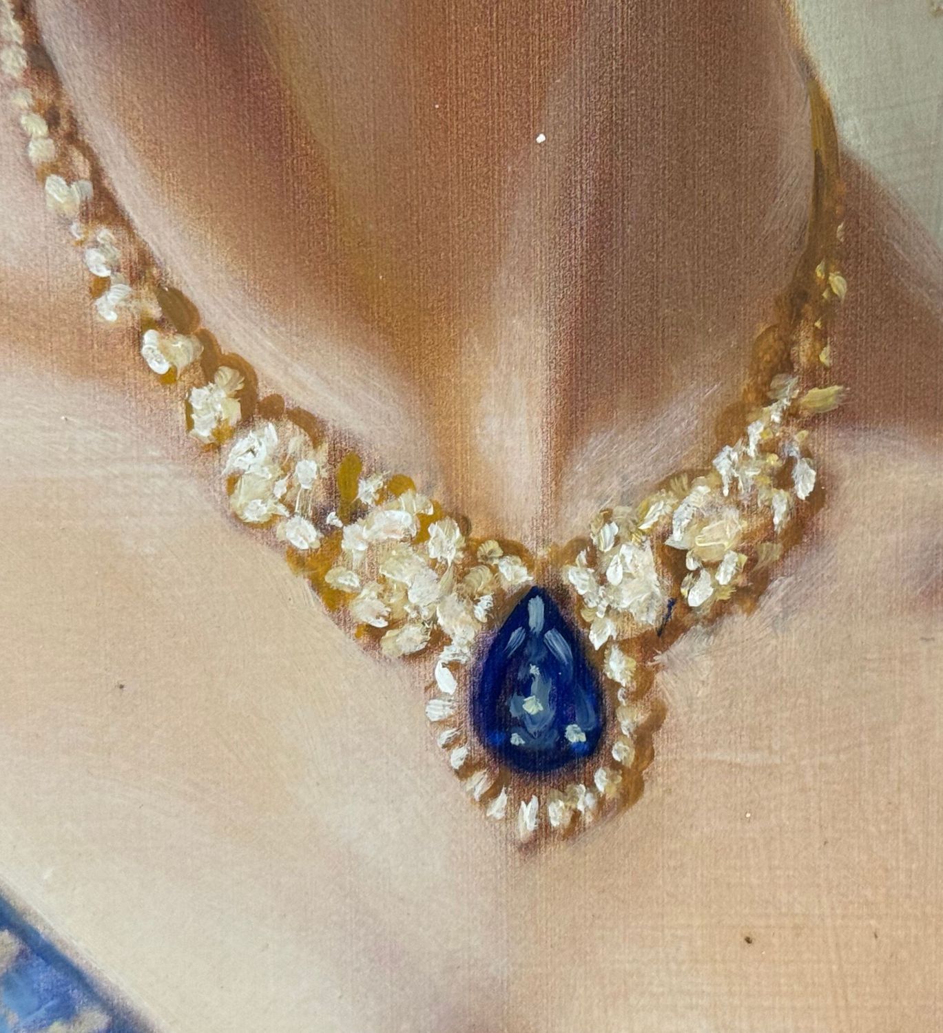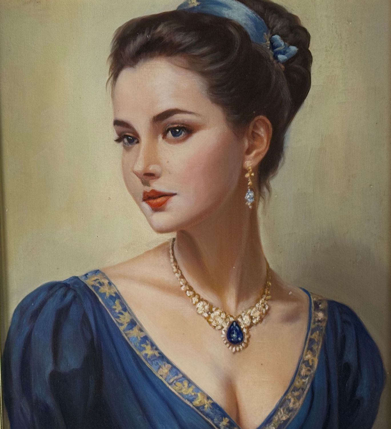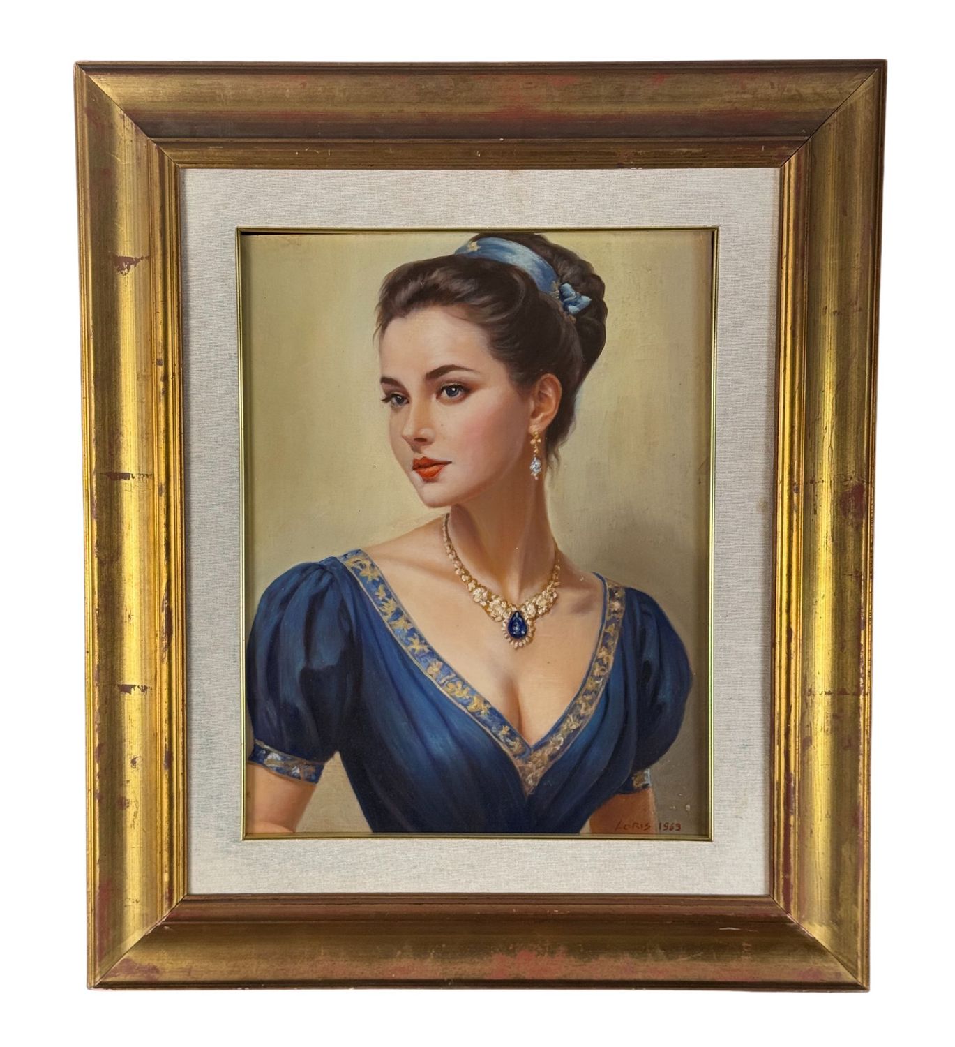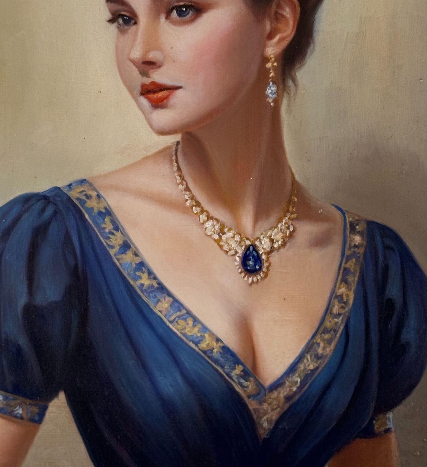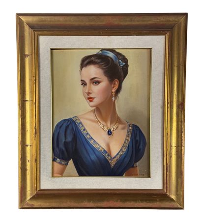 Dipinto olio su tela, periodo XX secolo scuola Italiana, raffigurante Elegante ritratto di donna. Dimensioni compreso cornice: 57x66 cm. Dimensioni interno cornice: 35x45 cm. Periodo 1960/70 Reca firma in basso a destra da artista non identificato. Opera in buone condizioni.