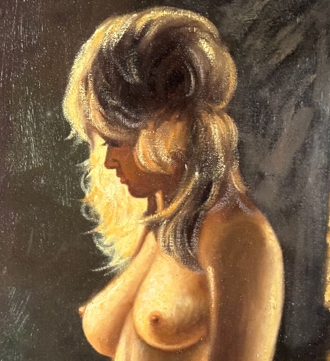 Dipinto olio su tela, periodo XX secolo scuola Italiana, raffigurante Nudo di donna. Dimensioni compreso cornice: 57x67 cm. Dimensioni interno cornice: 30x40 cm. Reca firma in basso a destra da Salvatore Castellano. Opera in buone condizioni.