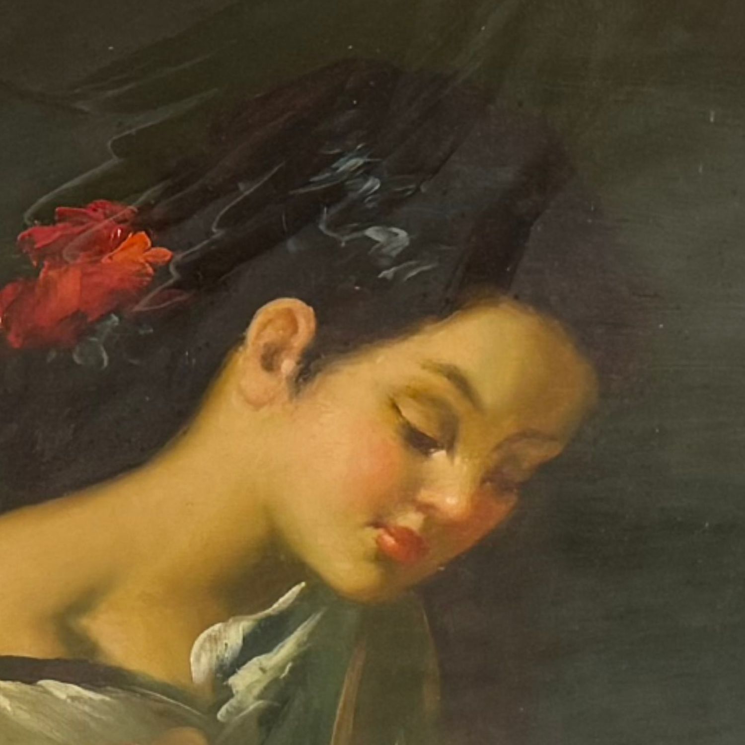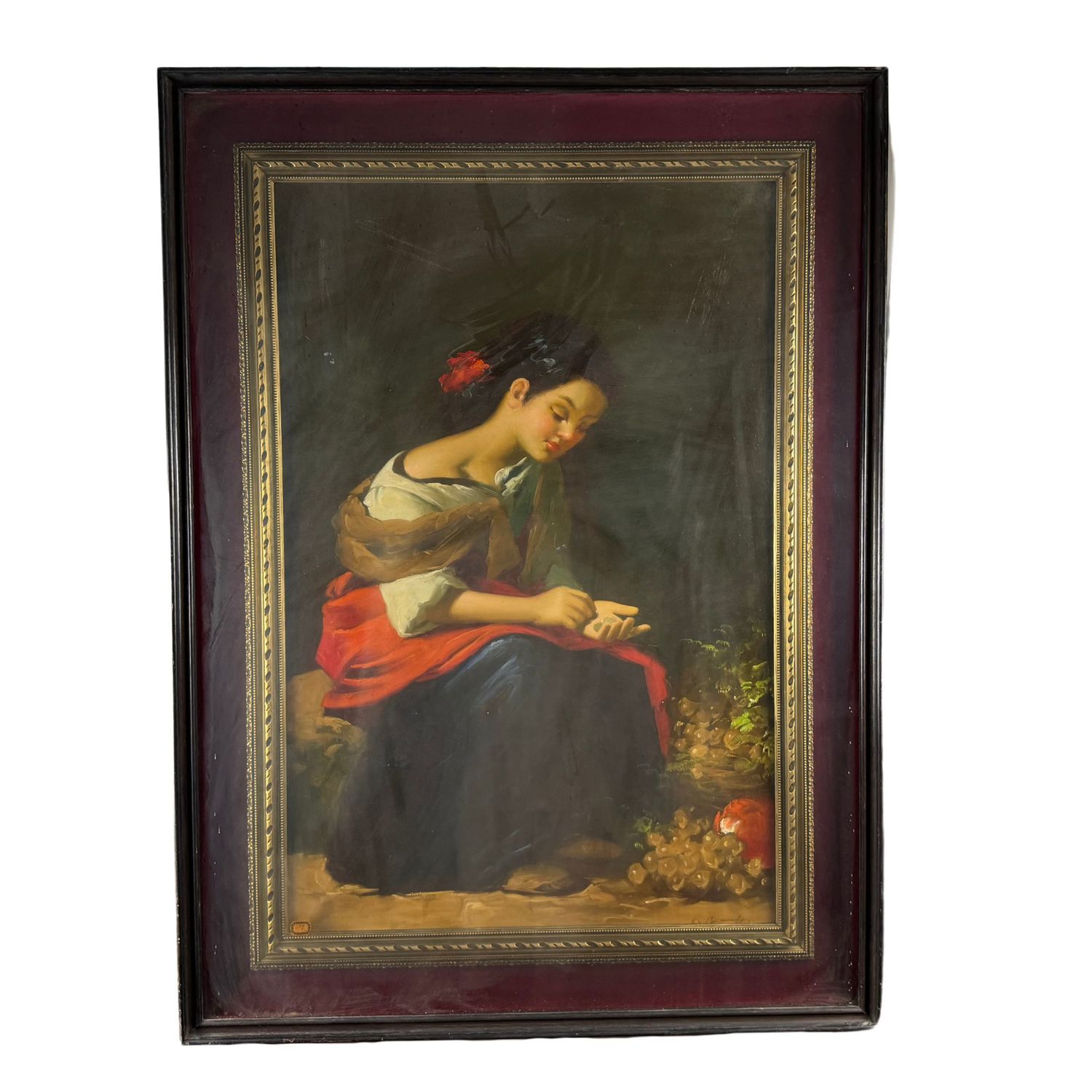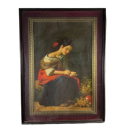Dipinto olio su tela, periodo XX secolo scuola Italiana, raffigurante Venditrice. Dimensioni interno cornice: 60x90 cm. Dimensioni compreso cornice: 85x115 cm. Reca firma in basso a destra da artista non identificato. Opera in buone condizioni.