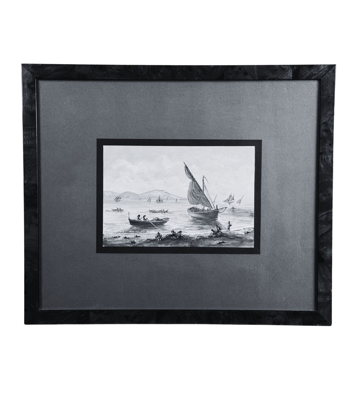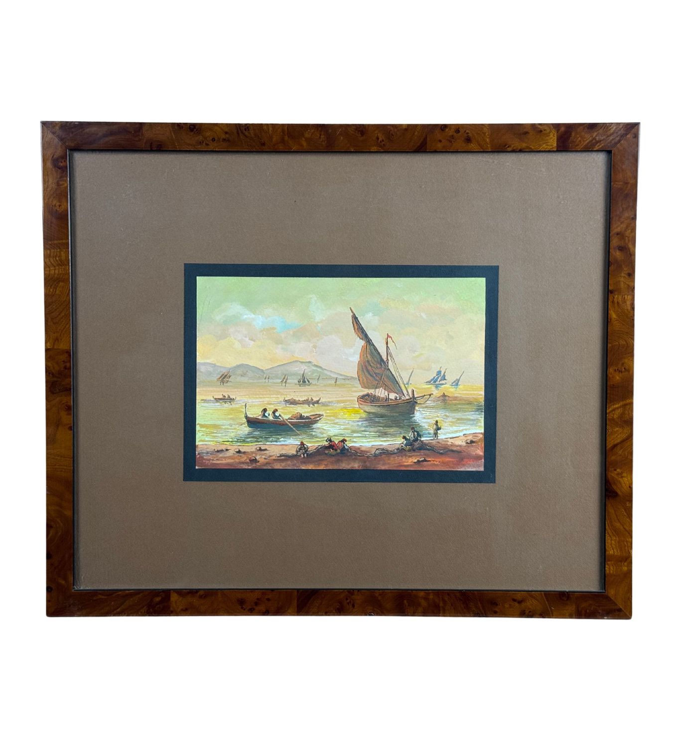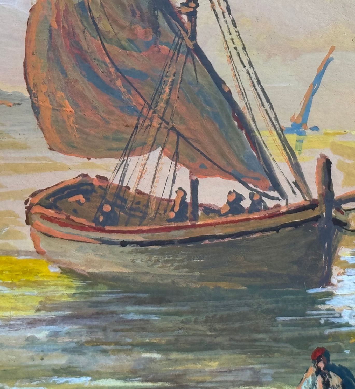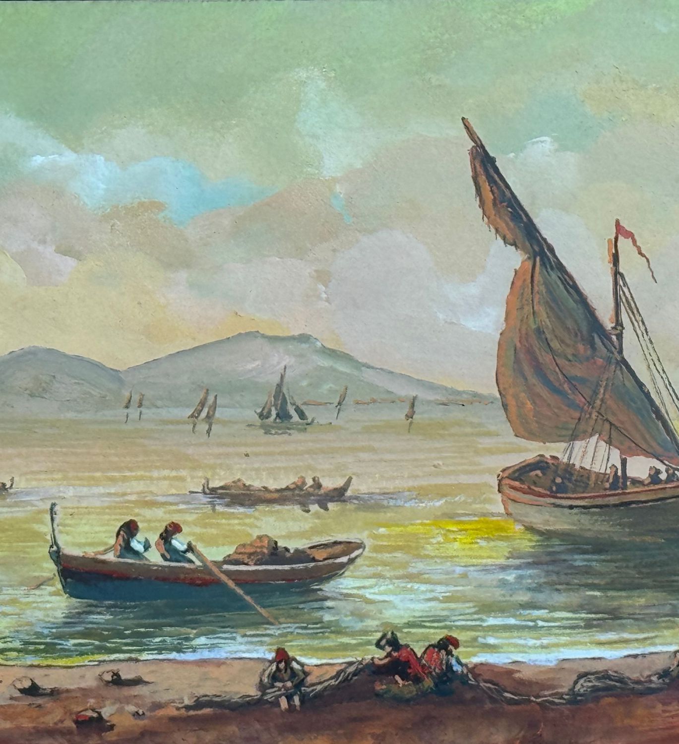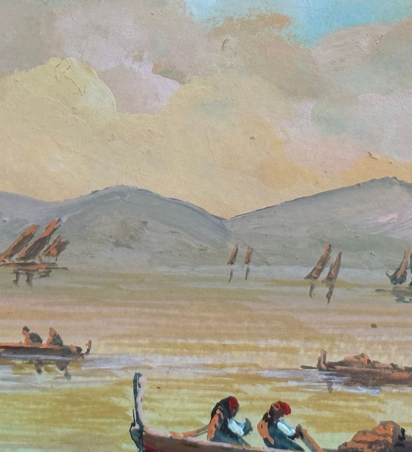 Dipinto guazzo (tempera su carta), periodo XX secolo scuola Italiana, raffigurante Pescatori. Dimensioni compreso cornice: 43x36 cm. Dimensioni interno cornice: 23x16 cm. Da artista anonimo. Opera in buone condizioni.