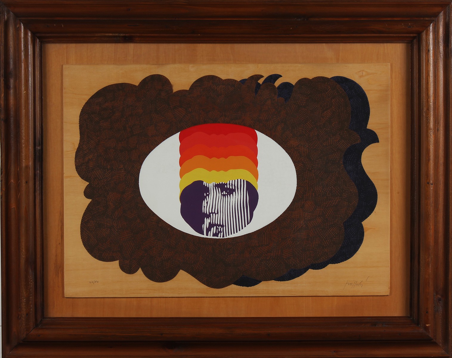 POZZATI CONCETTO (n. 1935) Senza titolo. Litografie. . Entrambe le opere presentano la tiratura e firma a matita in basso. Litografia, tiratura 59/500, cm 47x67 , datata 1968. Litografia su tavola,Tiratura 47/80, cm50x70. Cornice presente