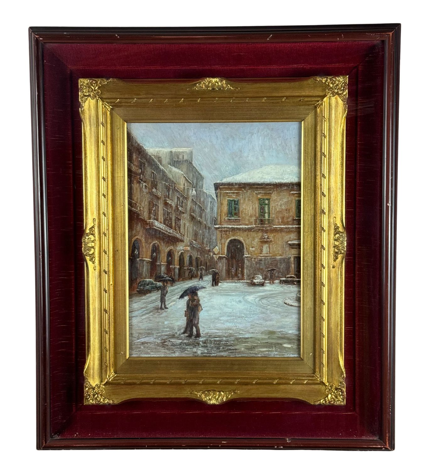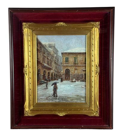 Dipinto olio su pannello, periodo XX secolo scuola Italiana, raffigurante Strada napoletana con personaggi. Dimensioni compreso cornice: 59x69 cm. Dimensioni interno cornice: 30x40 cm. Da artista anonimo. Opera in ottime condizioni.