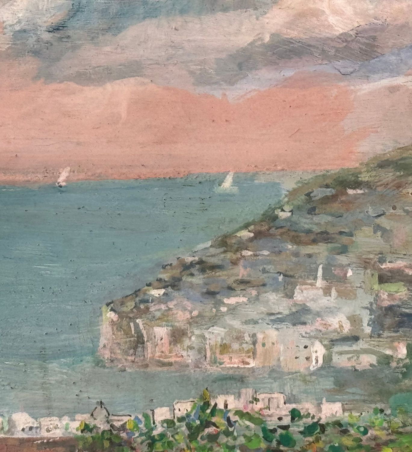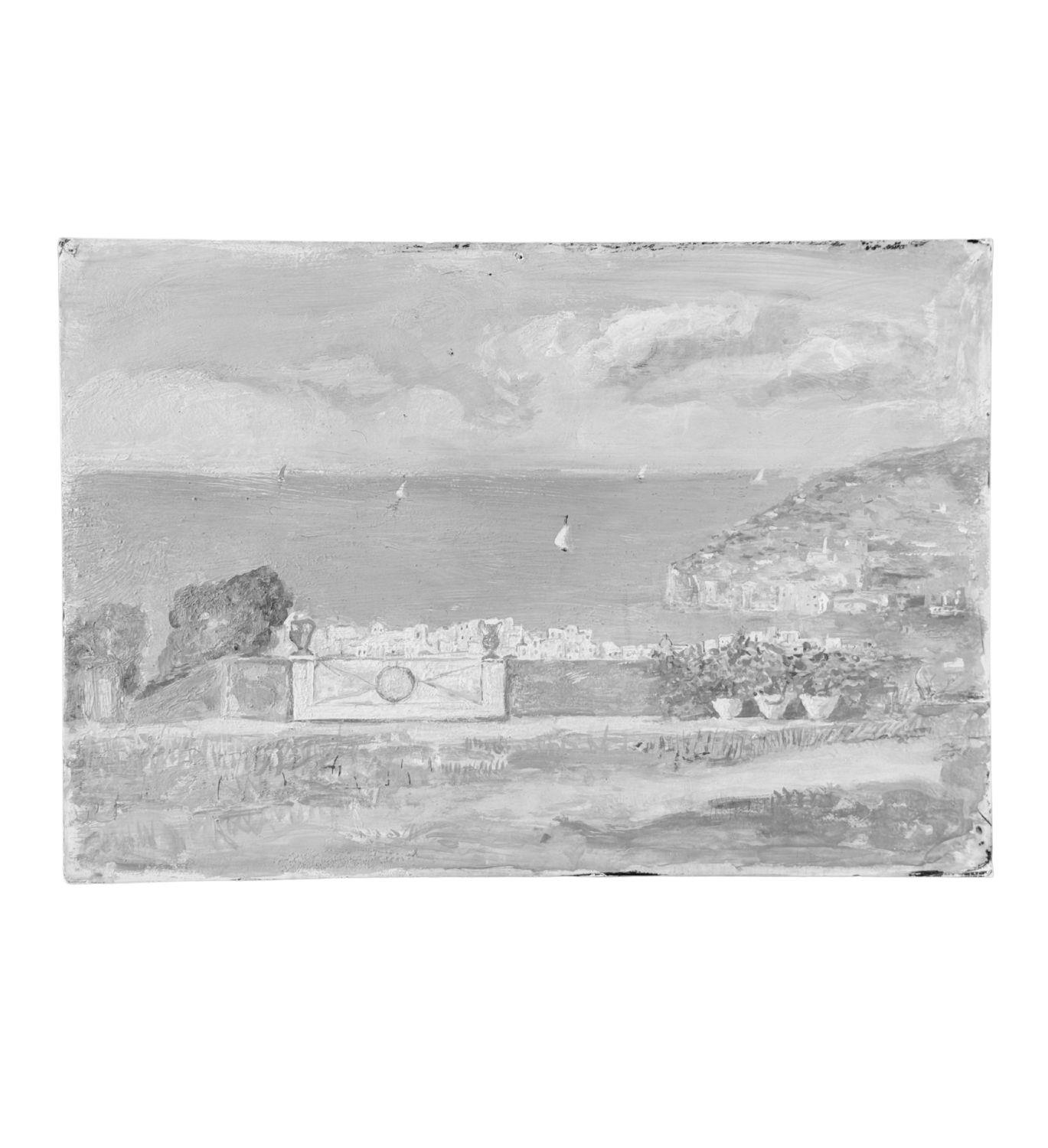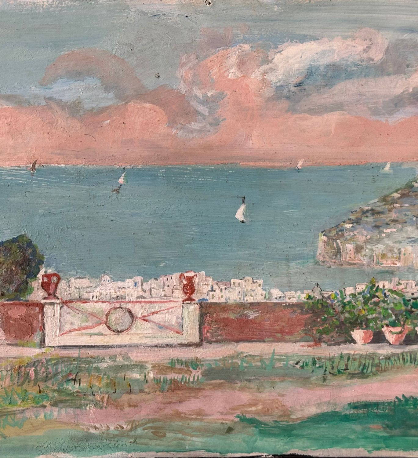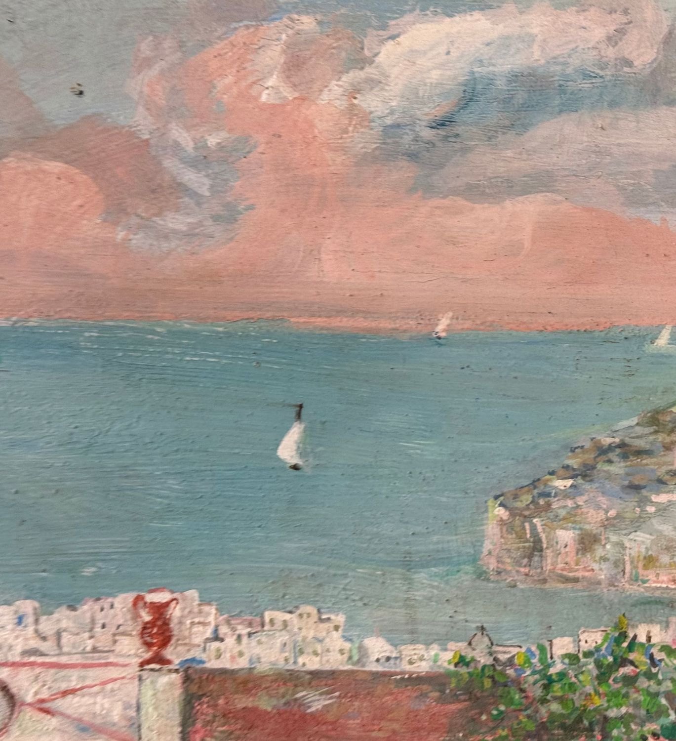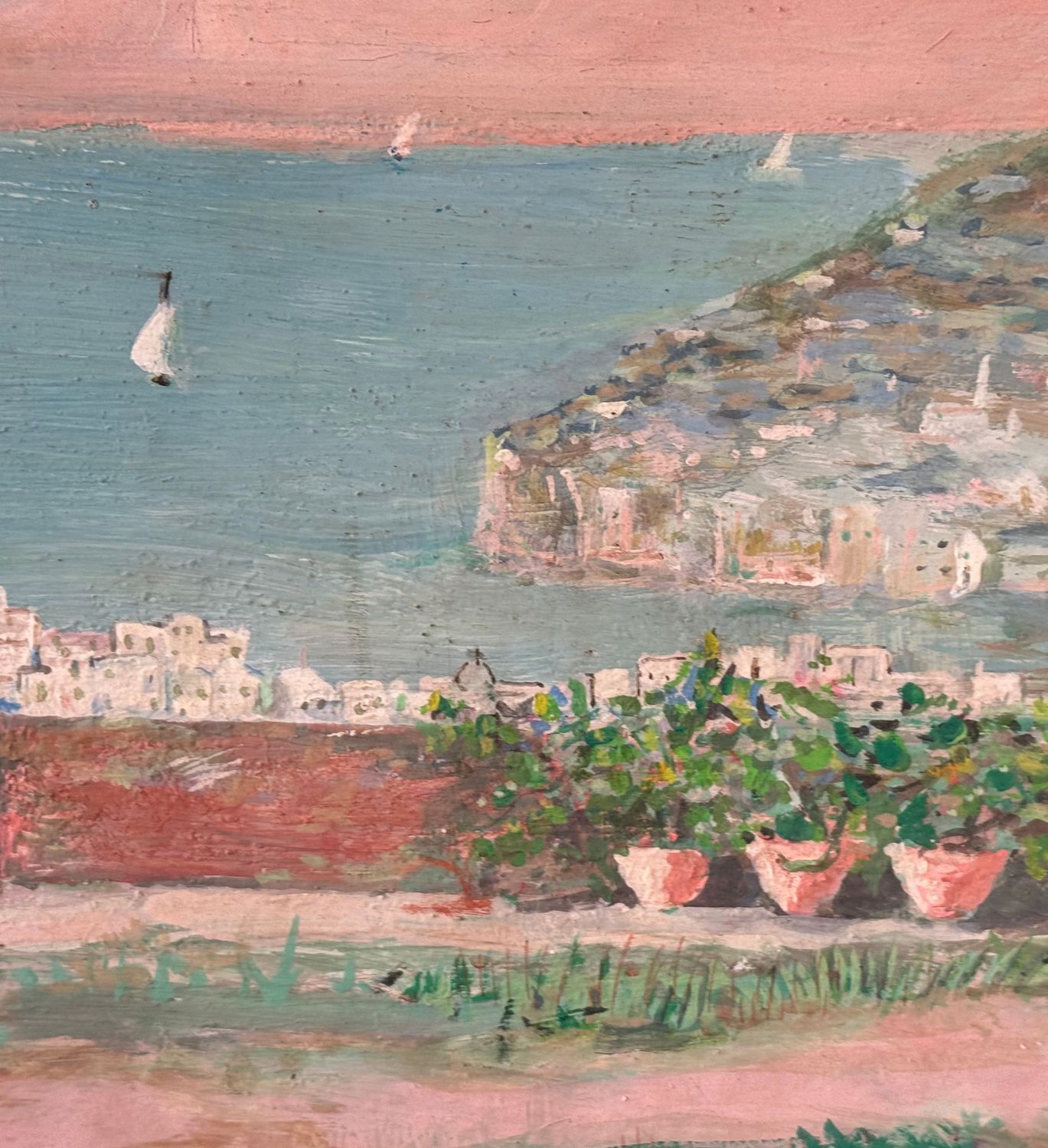 Dipinto olio su cartoncino, periodo XX secolo, raffigurante Scorcio di marina. Dimensioni: 31x45 cm. Da artista anonimo. Opera in buone condizioni.