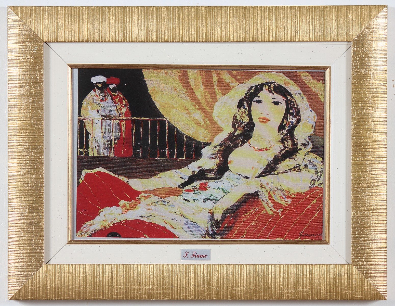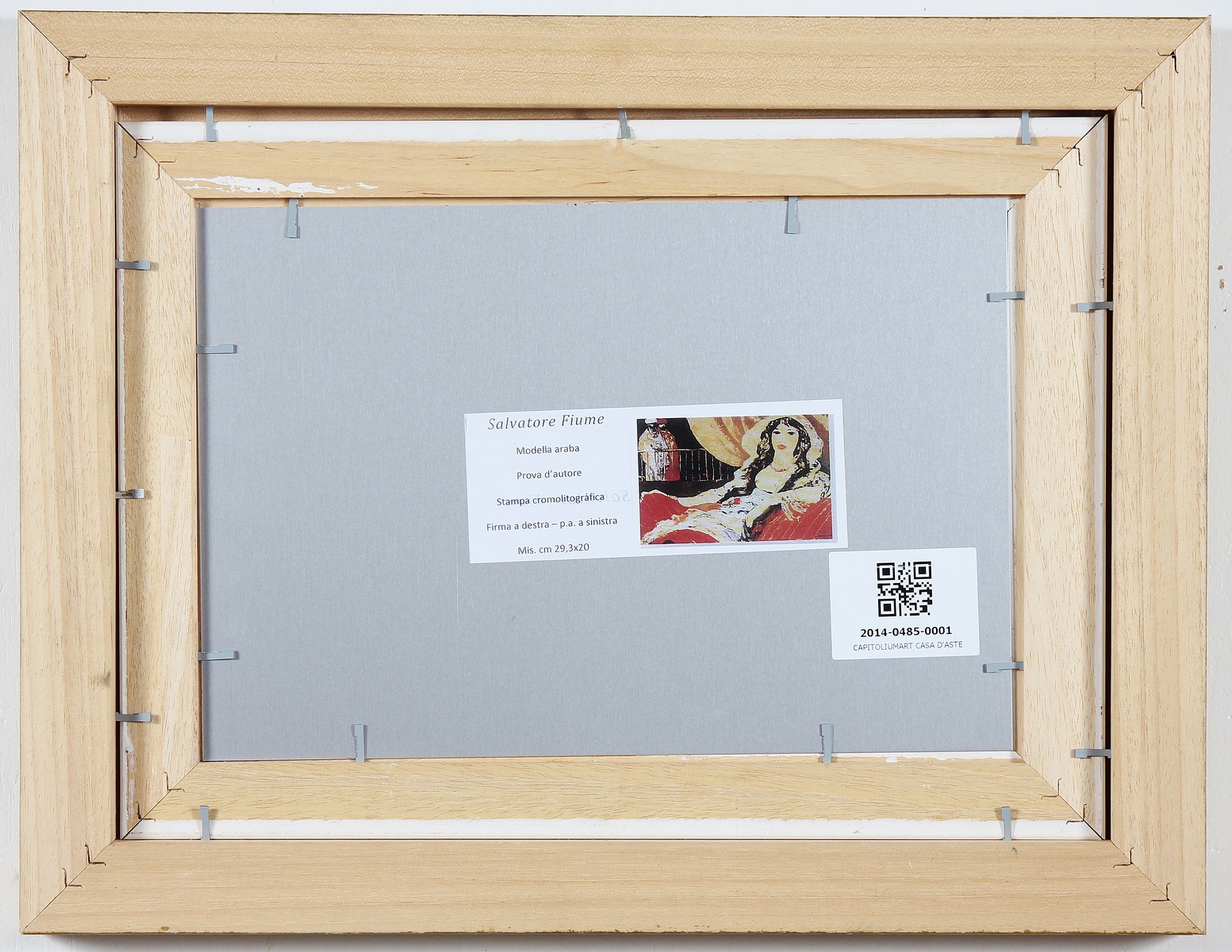 FIUME SALVATORE (1915 - 1997) Modella Araba. Stampa cromolitografica. Cm 20,00 x 29,30. Prova d'autore. Firma in basso a destra. Al retro cartiglio descrittivo. Cornice presente