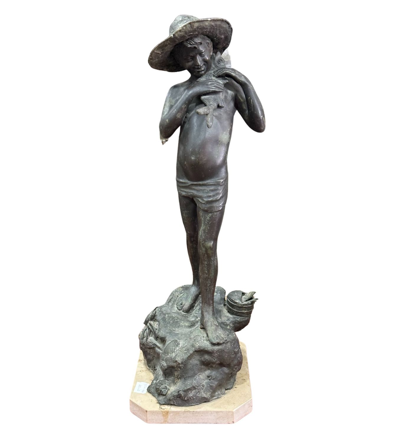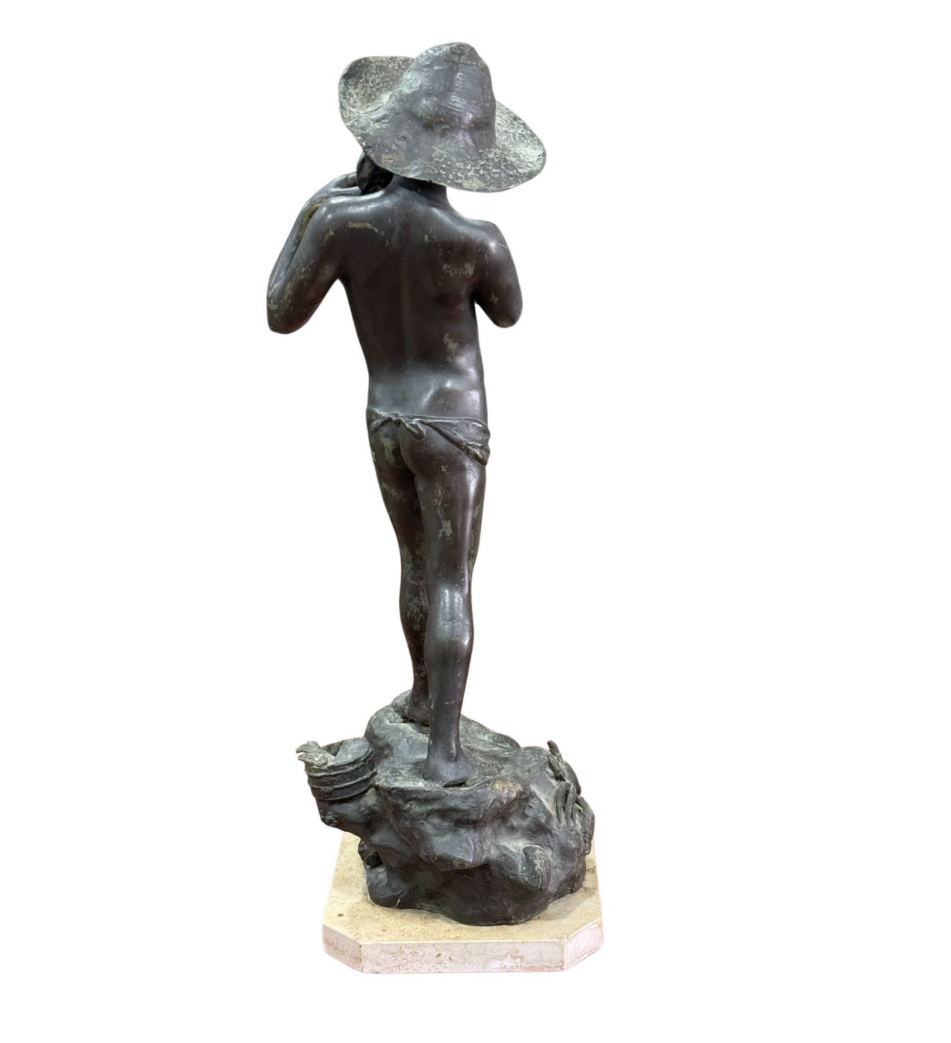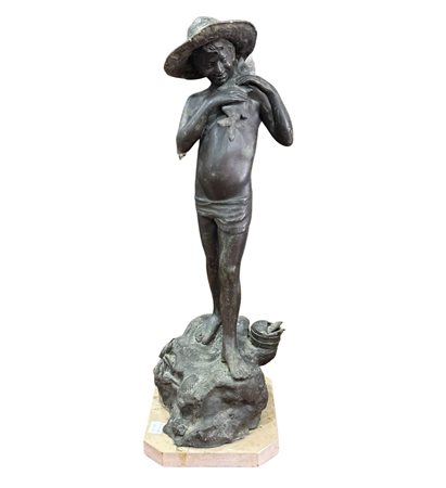Scultura in bronzo a cera persa su base in marmo, periodo XX secolo, raffigurante Pescatore napoletano. Dimensioni: h76x24x30 cm. Scultura in buone condizioni.
