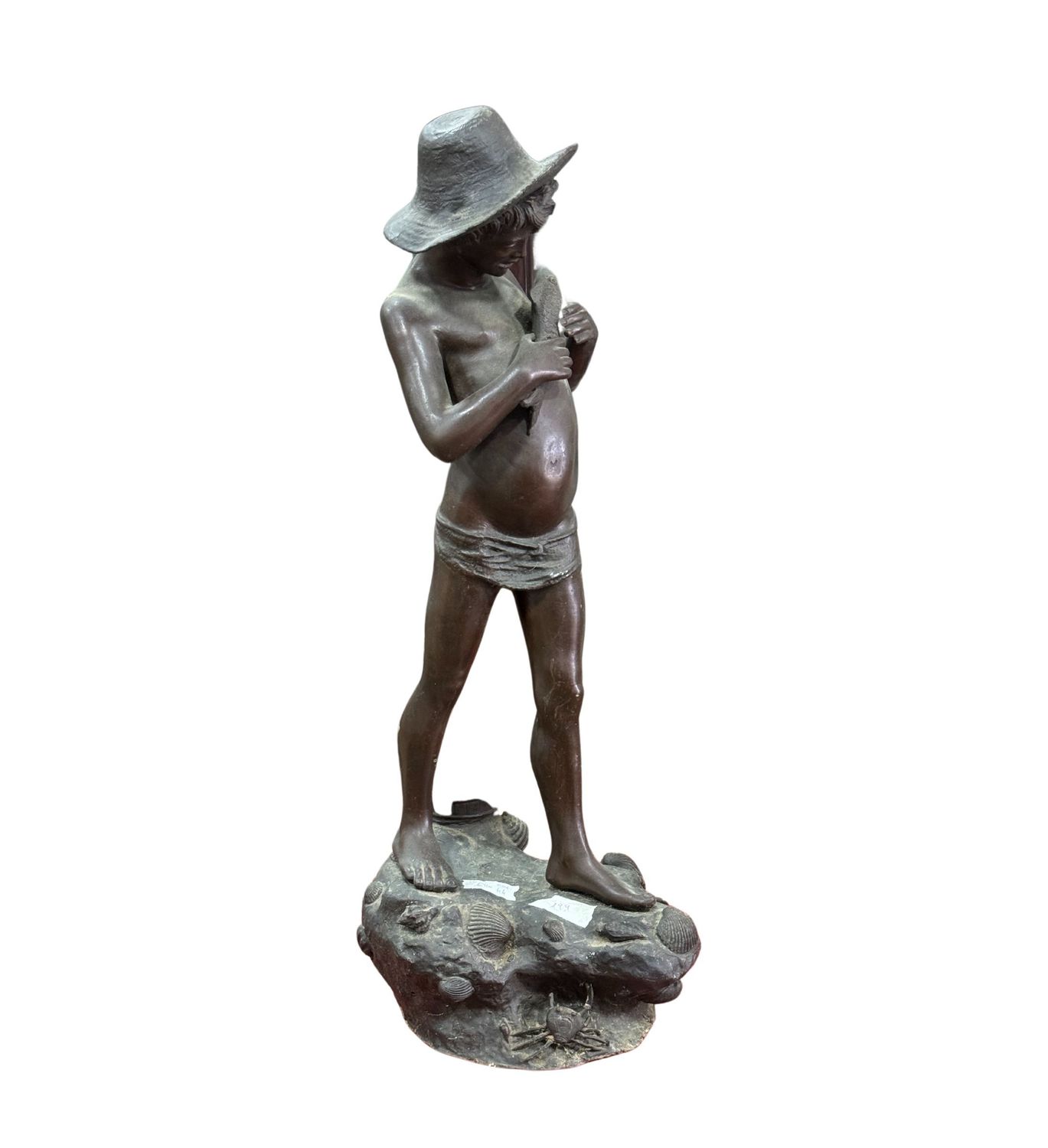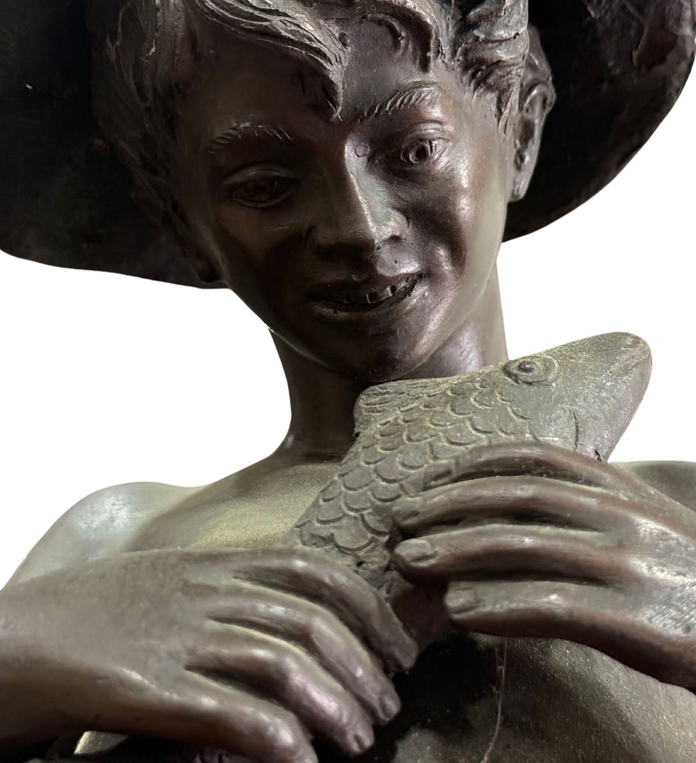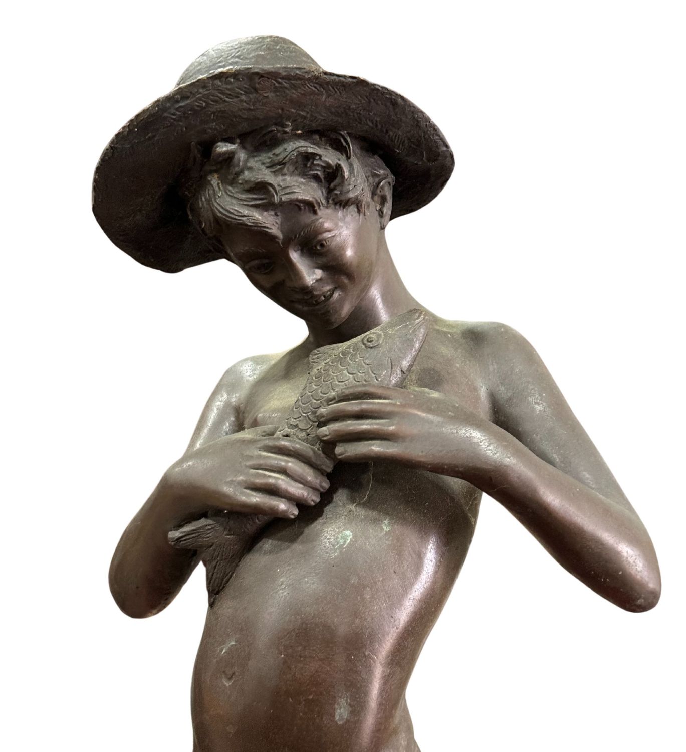 Scultura in bronzo a cera persa, periodo XX secolo, raffigurante Pescatore napoletano. Dimensioni: h70x28x23 cm. Scultura in buone condizioni.