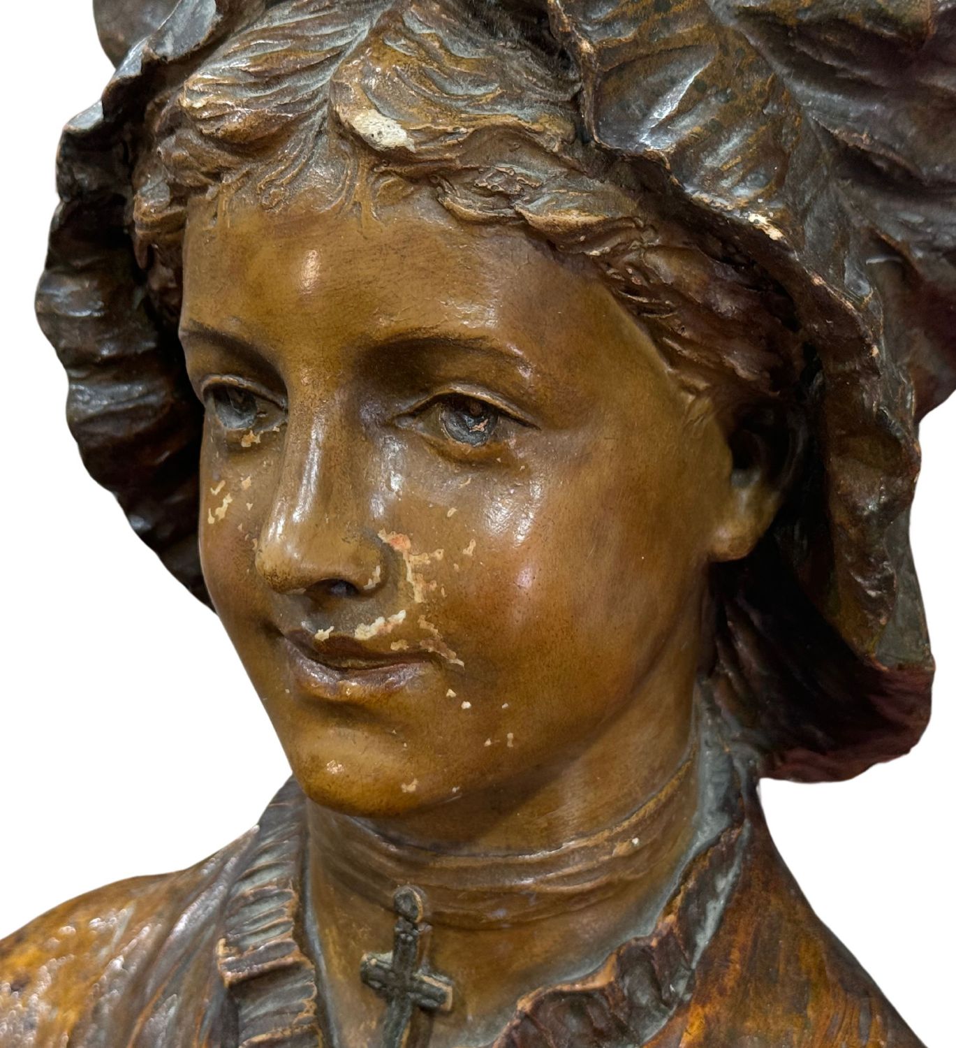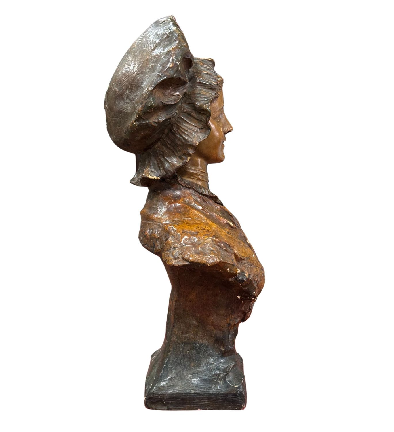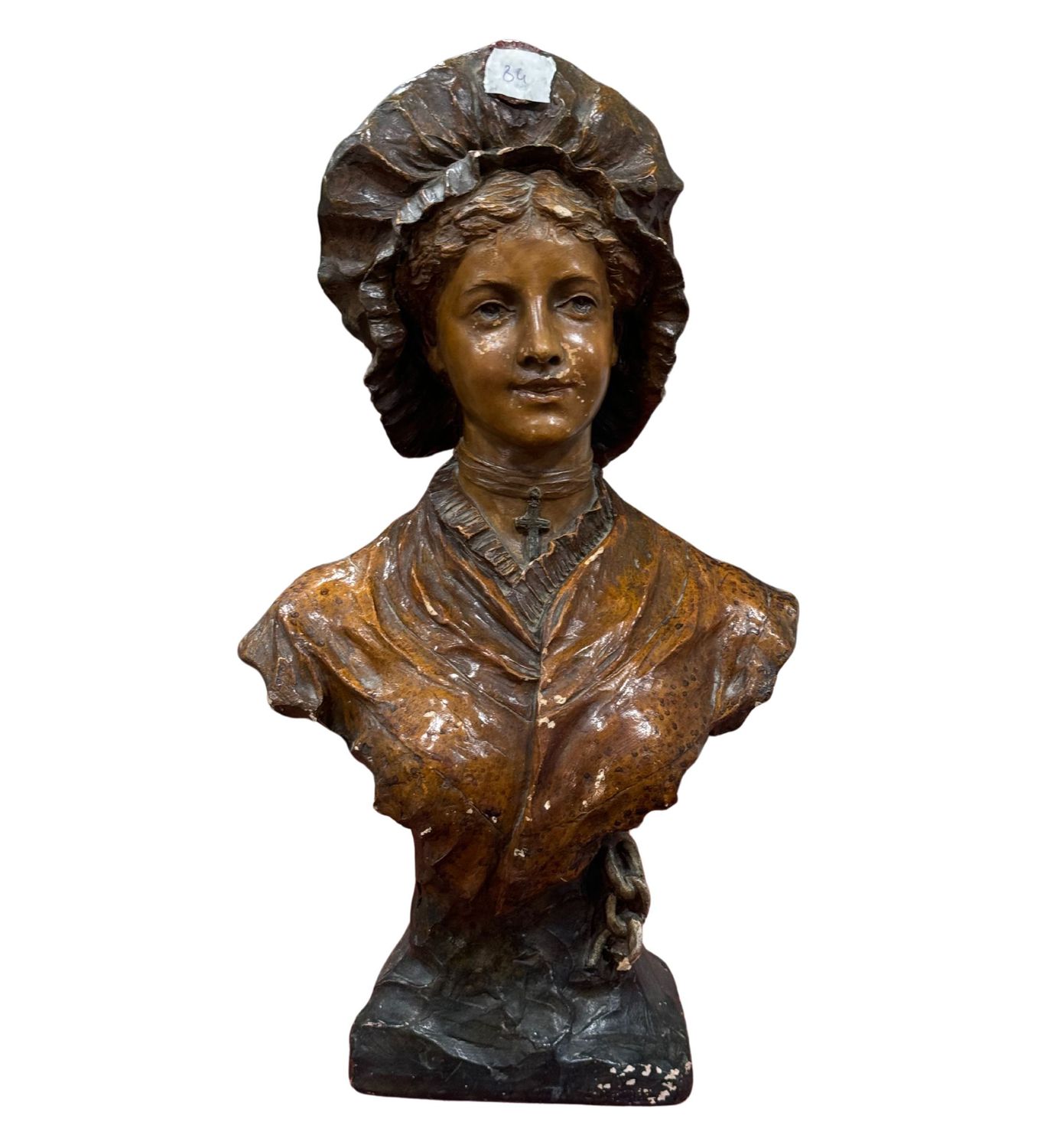 Scultura in gesso, periodo XIX/XX secolo raffigurante Busto di donna. Dimensioni: h55x32x22 cm. Scultura in buone condizioni con lievi segni di vissuto come da foto allegate.