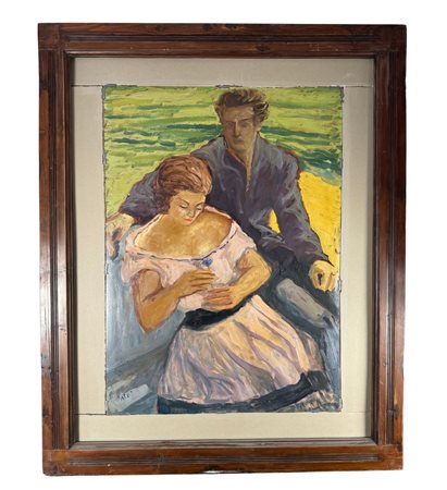 Dipinto olio su cartoncino, periodo XX secolo scuola Italiana, raffigurante Due personaggi. Dimensioni compreso cornice: 106x130 cm. Dimensioni interno cornice: 70x97 cm. Da artista anonimo. Opera in buone condizioni.