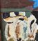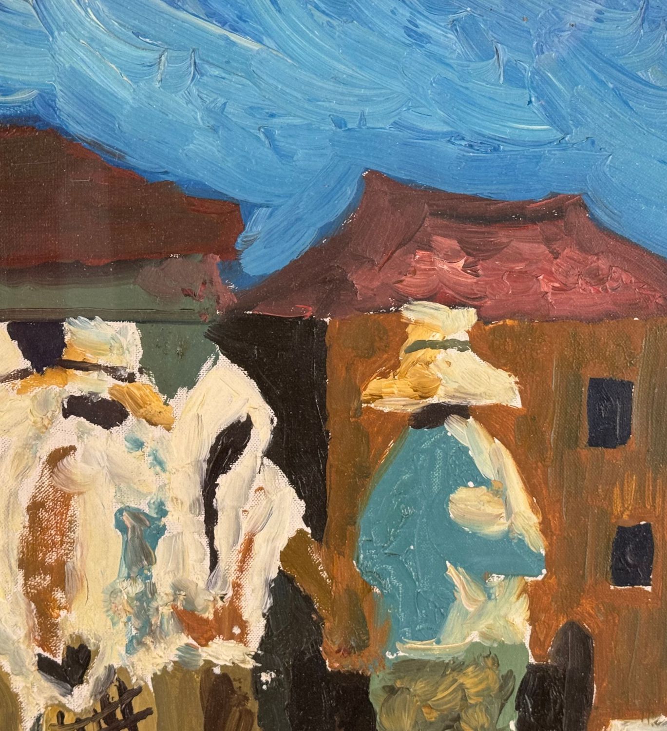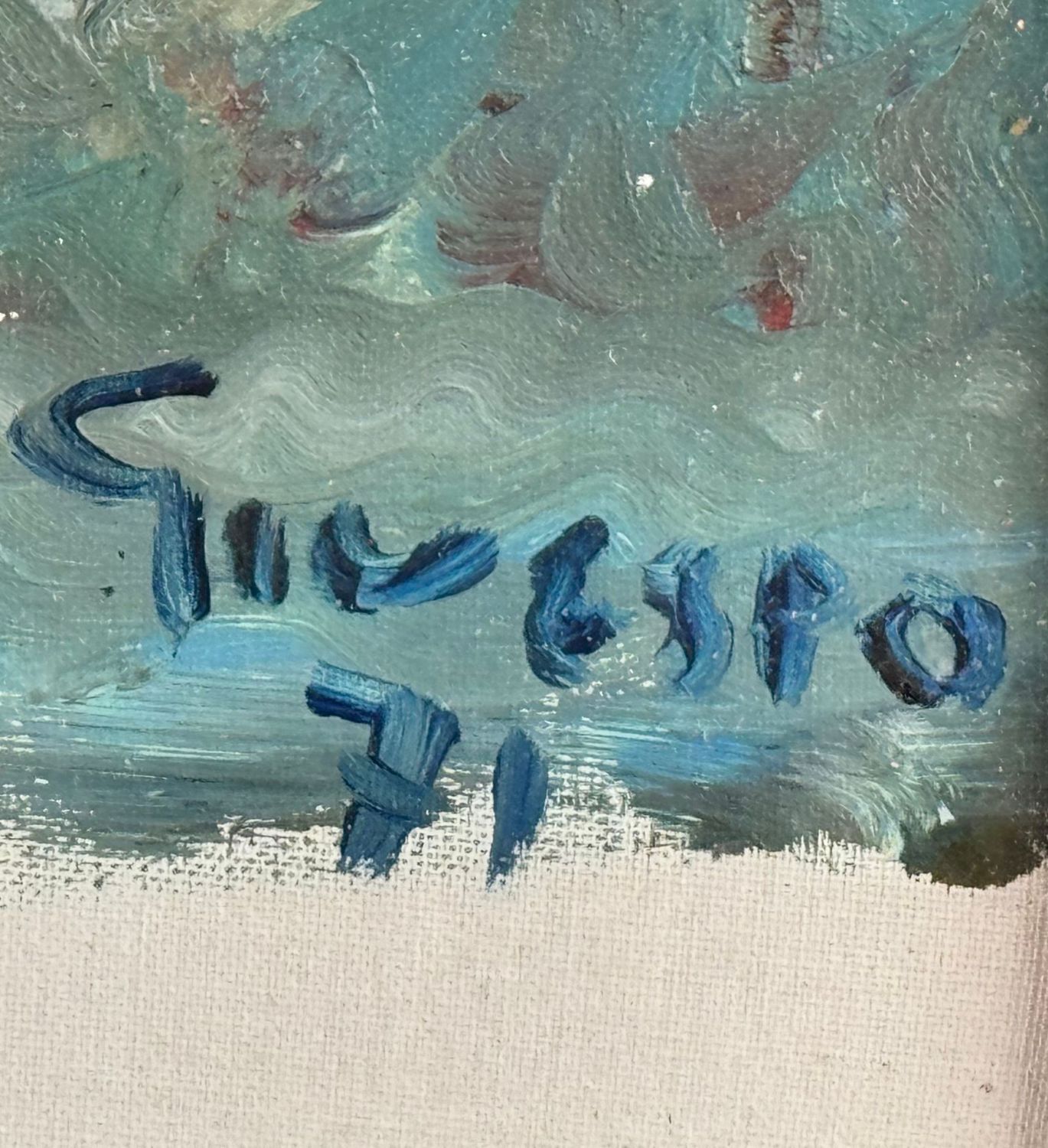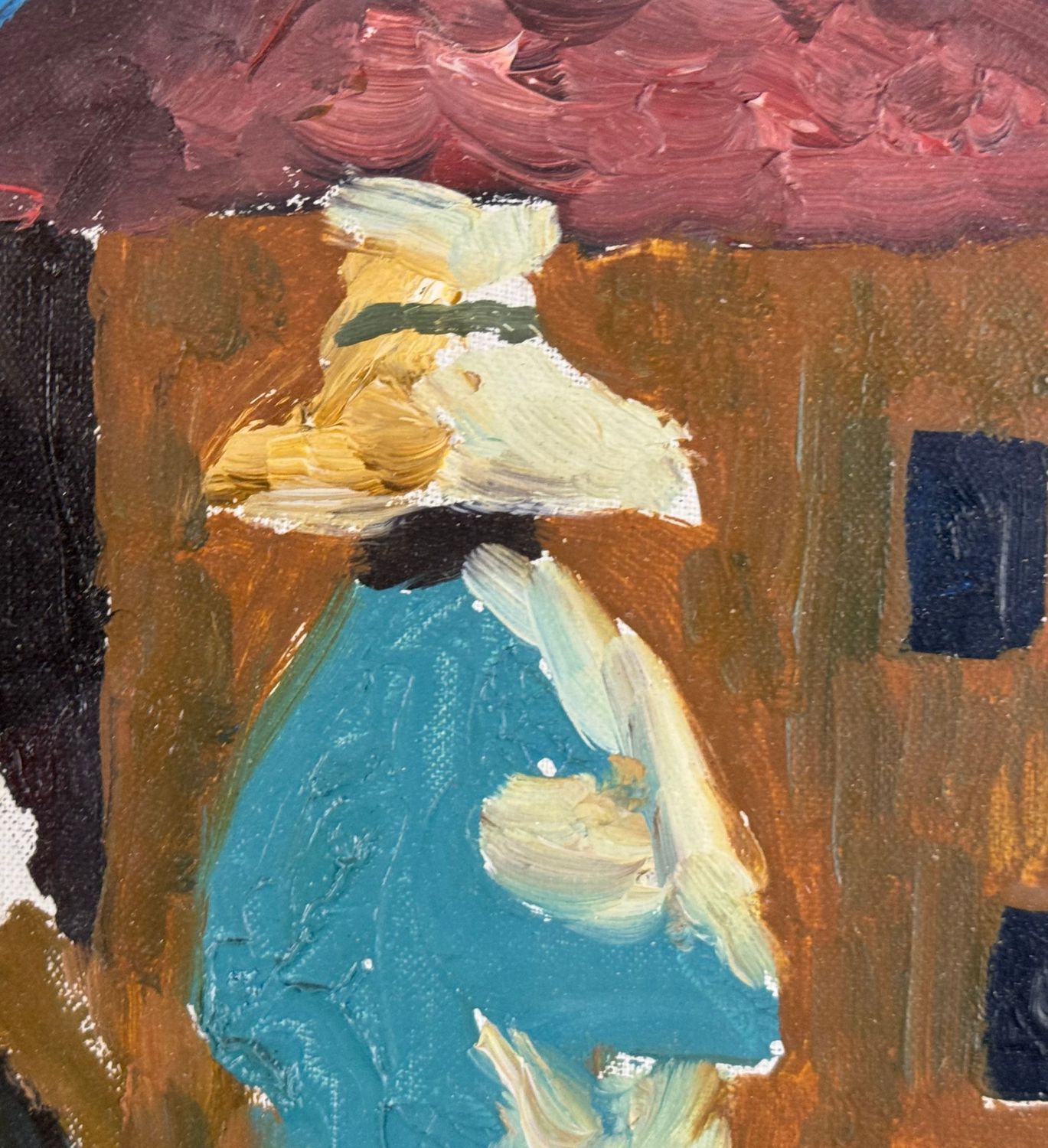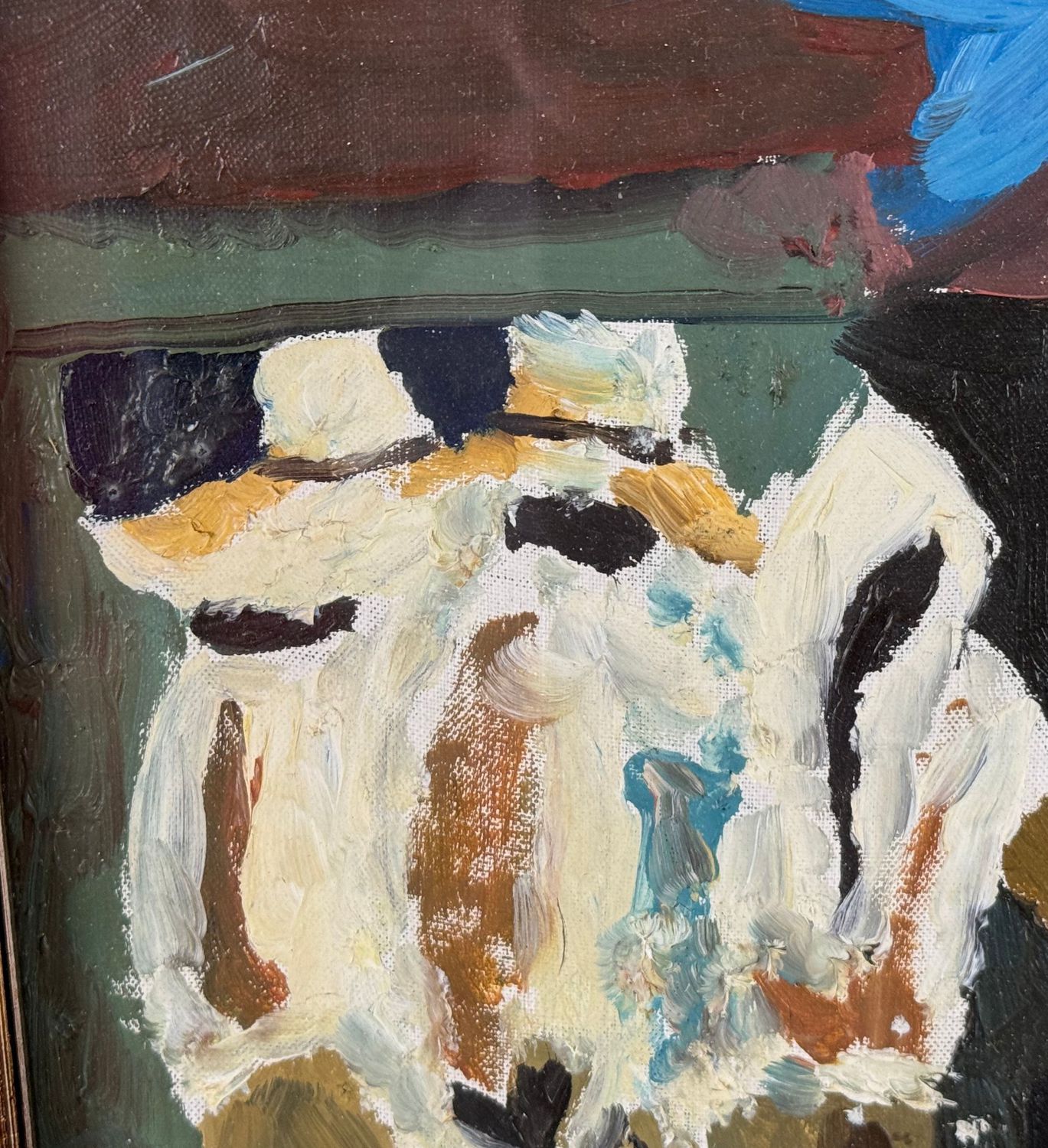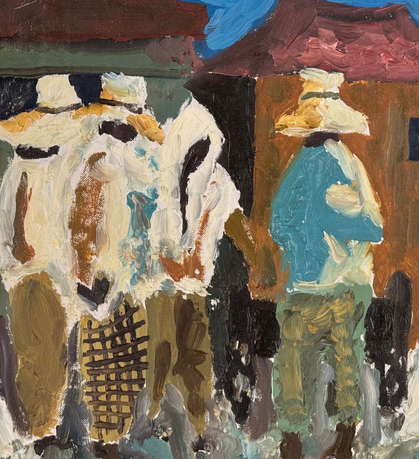 Dipinto olio su tela, periodo XX secolo scuola Italiana, raffigurante Personaggi. Dimensioni compreso cornice: 42x57 cm. Dimensioni interno cornice: 30x45 cm. Reca firma in basso a destra da artista non identificato. Opera in buone condizioni.