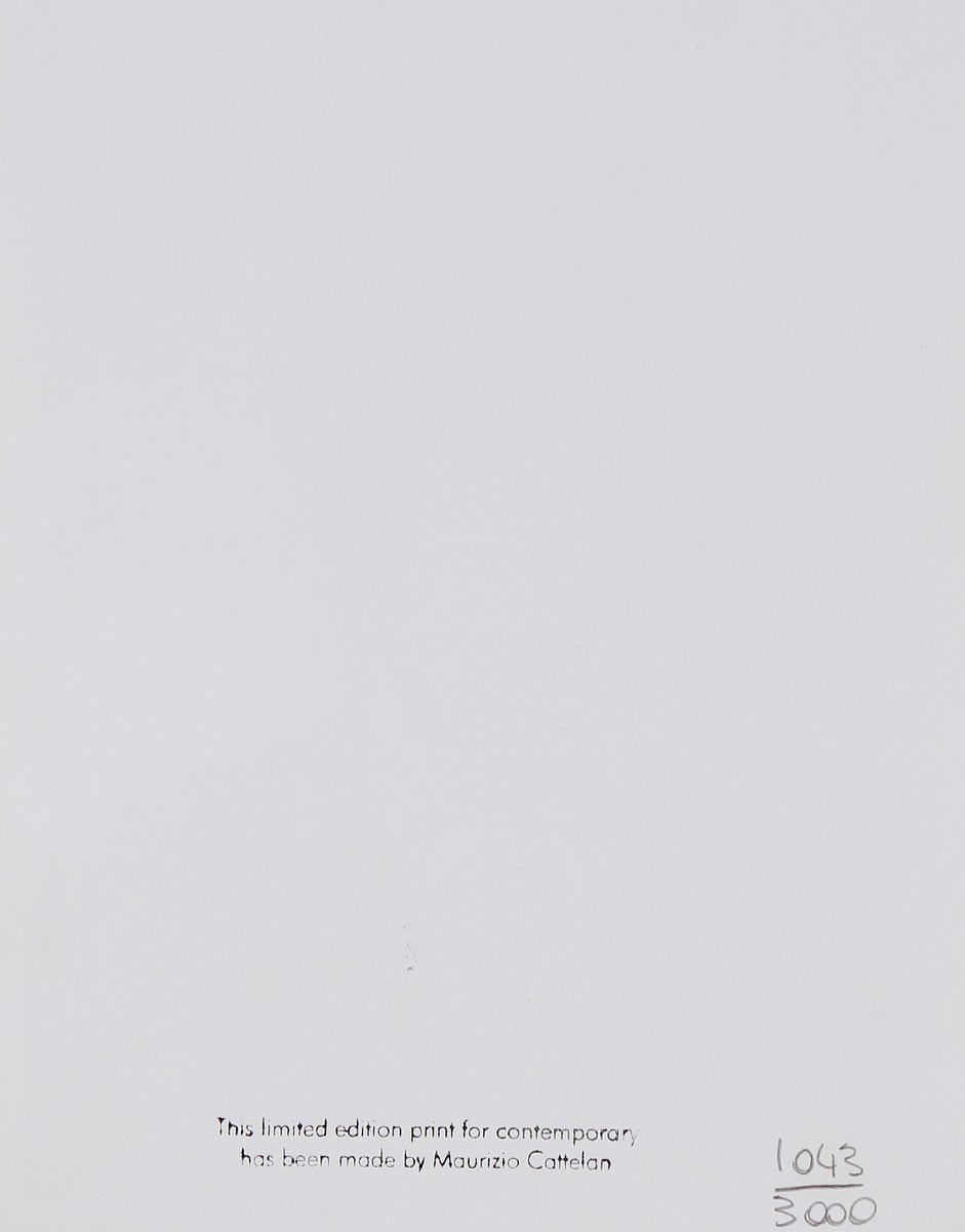 CATTELAN MAURIZIO (n. 1960) Senza titolo. Stampa. Cm 19,00 x 15,00. 1043/3000. Limited edition print for contemporary has been made Maurizio Cattelan.