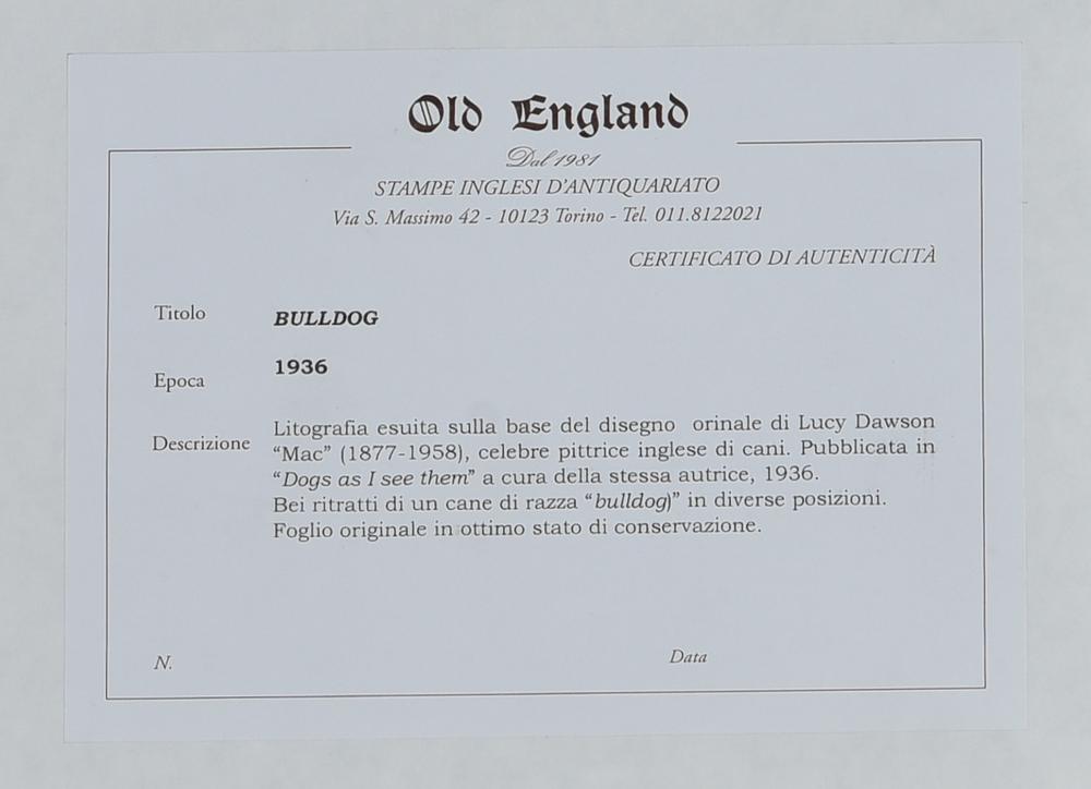 Lotto 2 | BULLDOG, Inghilterra 1936 litografia, cm 36x30 (con cornice) sul retro:...