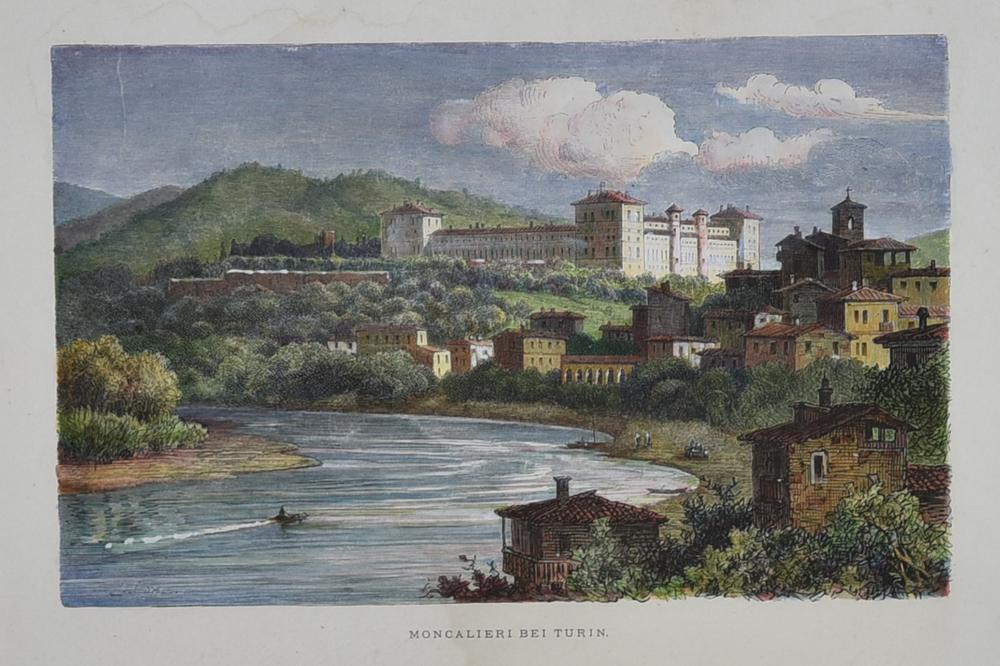 MONCALIERI BEI TURIN, Stoccarda 1876 silografia con acquarellatrura coeva, cm...