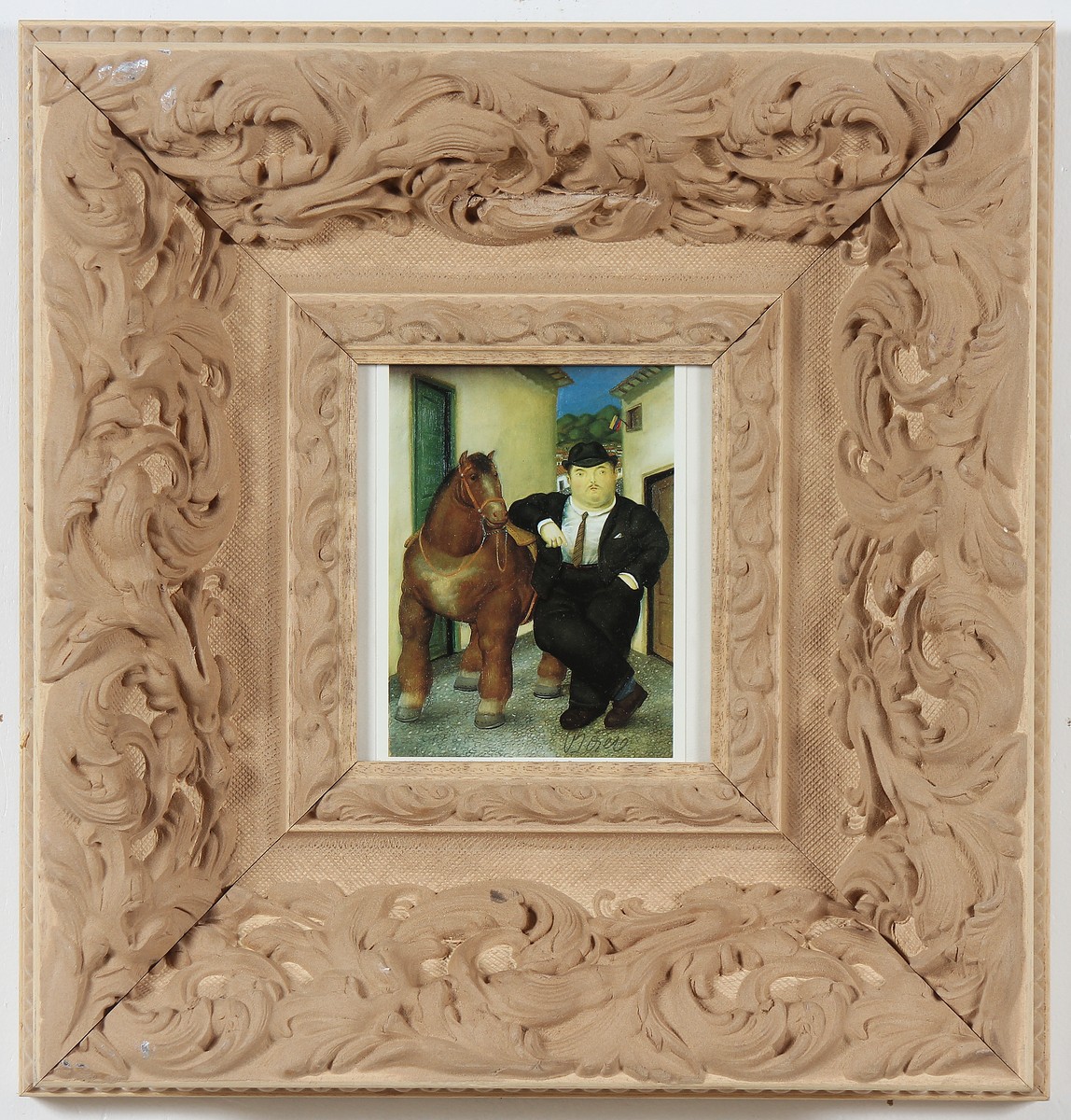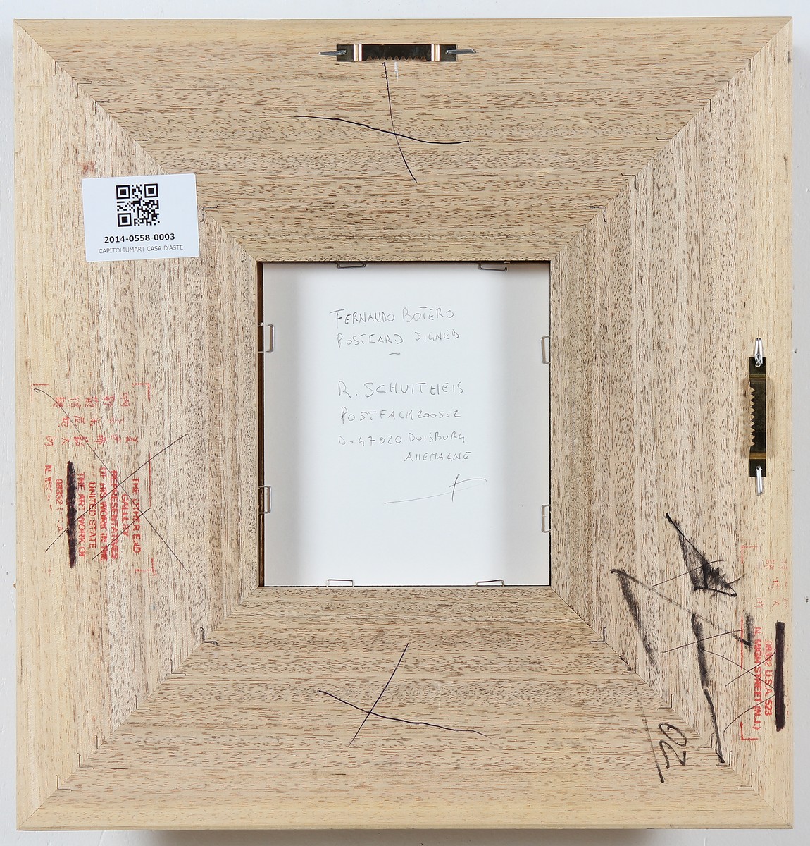 BOTERO FERNANDO (n. 1932) Post card. Cartolina. Cm 10,50 x 14,00. Firma a matita in basso. Cornice presente