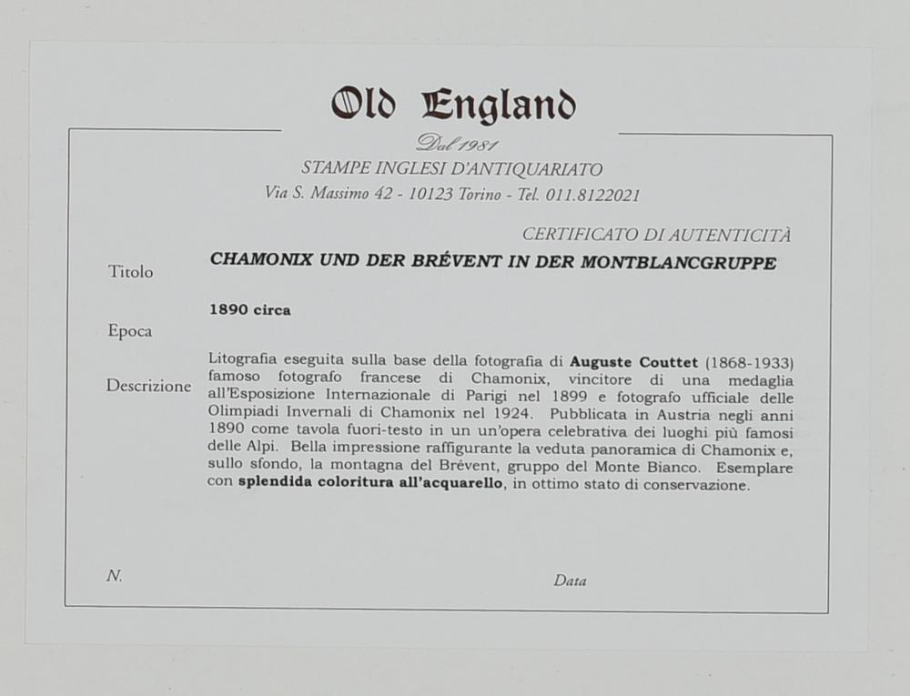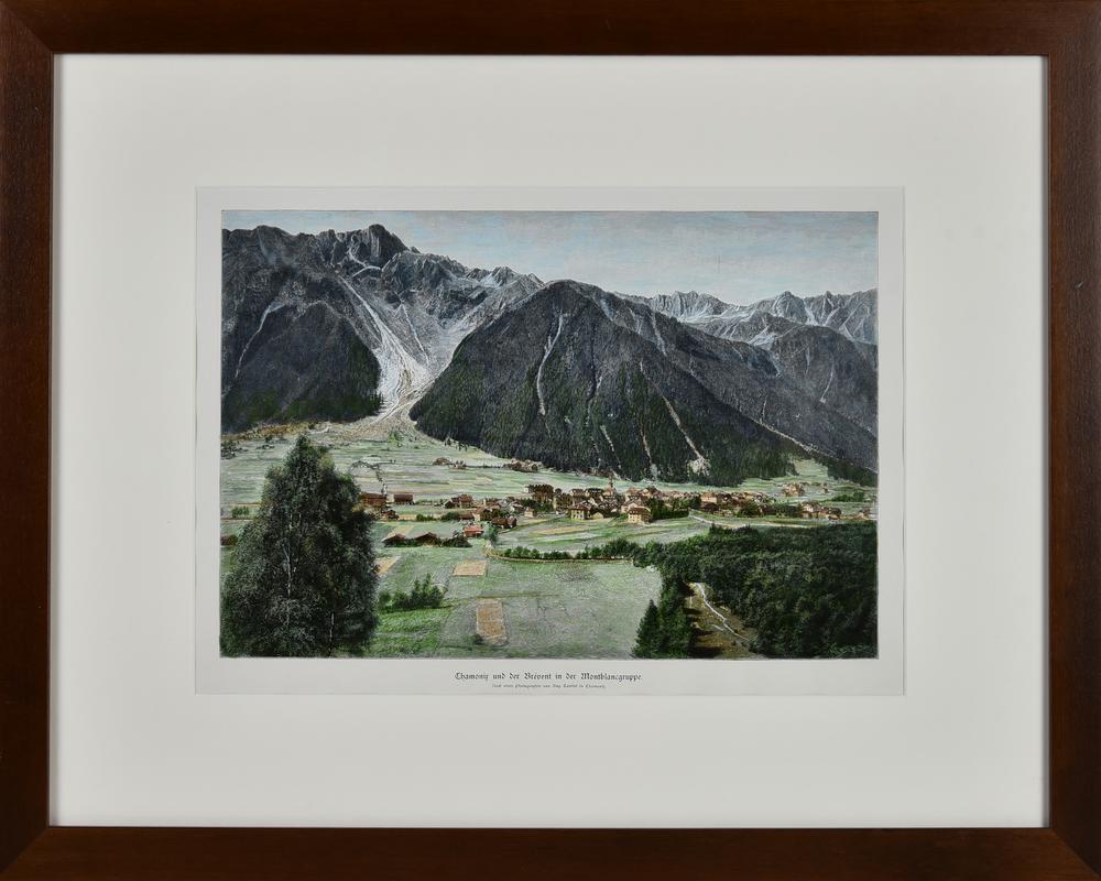 CHAMONIX UND DER BREVENT IN DER MONTBLANCGRUPPE, 1890 litografia con...