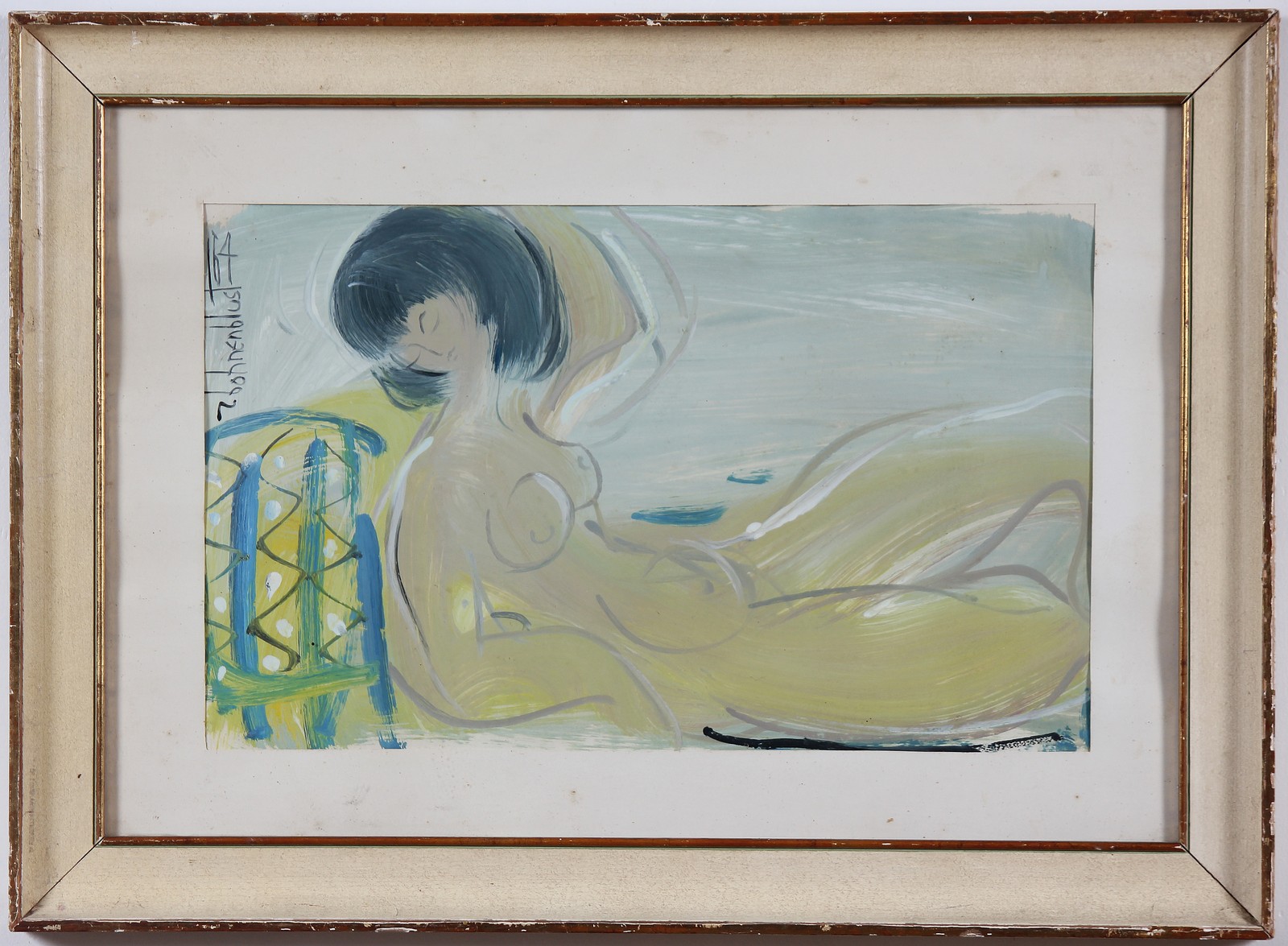 BOHNENBLUST ROGER (1929 - 1979) Figura femminile. Tecnica mista su cartone. Cm 28,00 x 45,00. Firma in alto a sinistra. Cornice presente