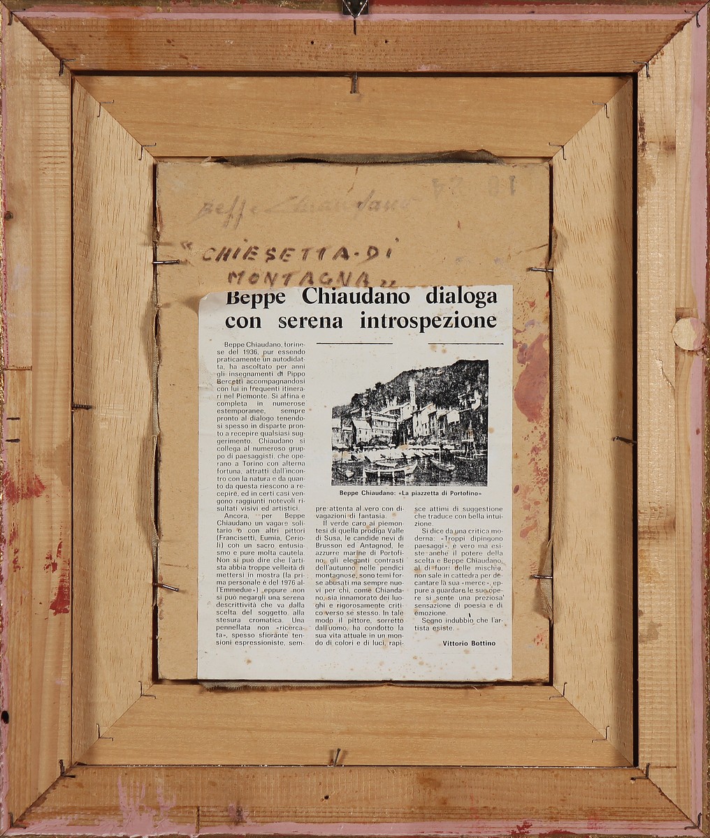 CHIAUDANO BEPPE (n. 1936) Coppia di dipinti. Scorcio ad Entredes, Chiesetta...