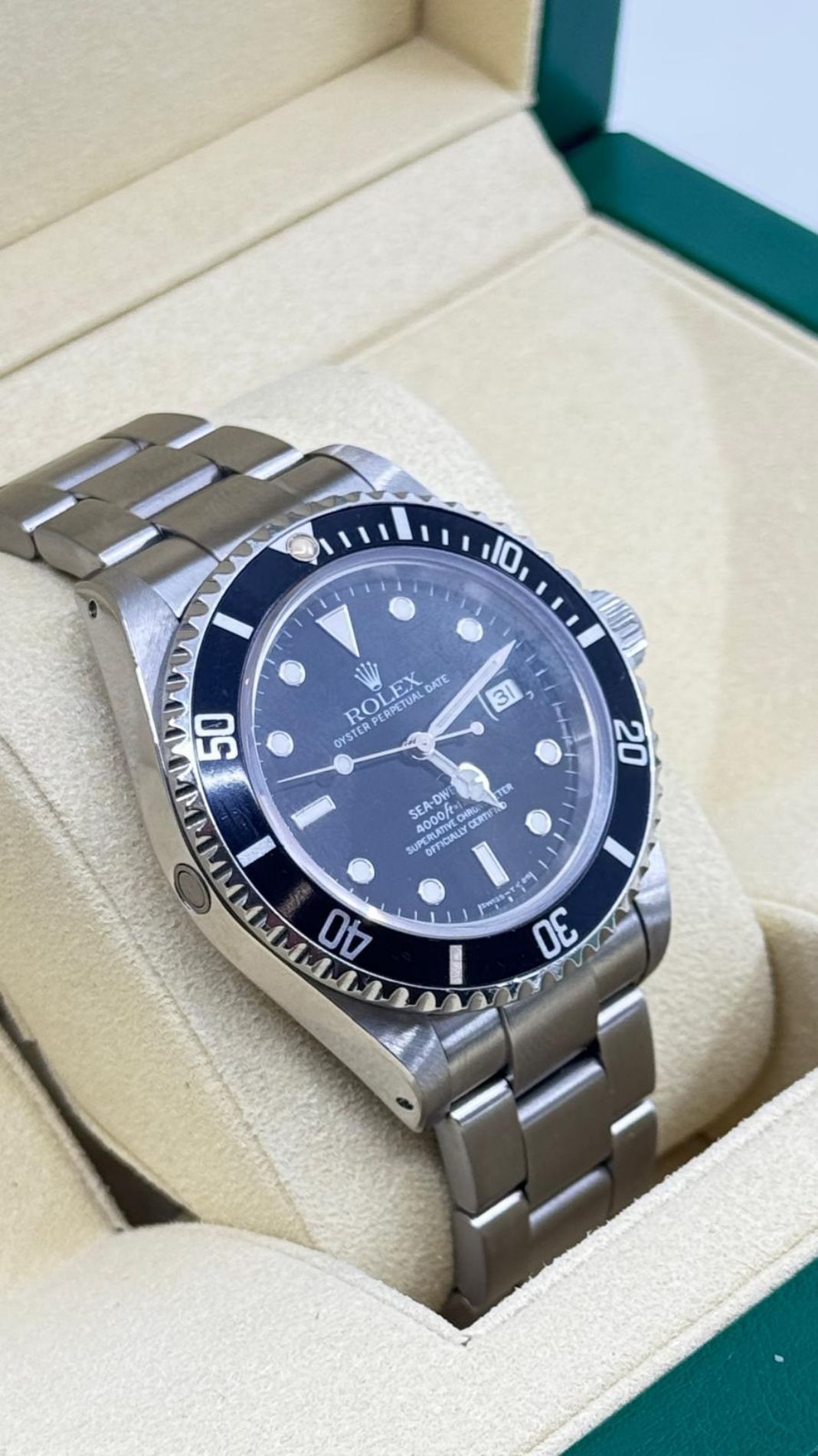 Marca Rolex Modello (Orologio) Sea-Dweller Numero di referenza 16600 Carica Automatico Materiale della cassa Acciaio Materiale cinturino Acciaio Anno di produzione 1997 Condizione Ottimo (di seconda mano, segni di usura assenti o appena visibili) Corredo documenti originali Rolex, no box Cassa Materiale della cassa Acciaio Diametro 40 mm Impermeabile Oltre i 120 ATM Materiale lunetta Acciaio Vetro Vetro zaffiro Quadrante Nero Numeri sul quadrante Senza numeri Cinturino Materiale cinturino Acciaio Colore cinturino Acciaio Chiusura Déployante Materiale chiusura Acciaio Funzioni Data - COMMISSIONE D’ASTA 25%