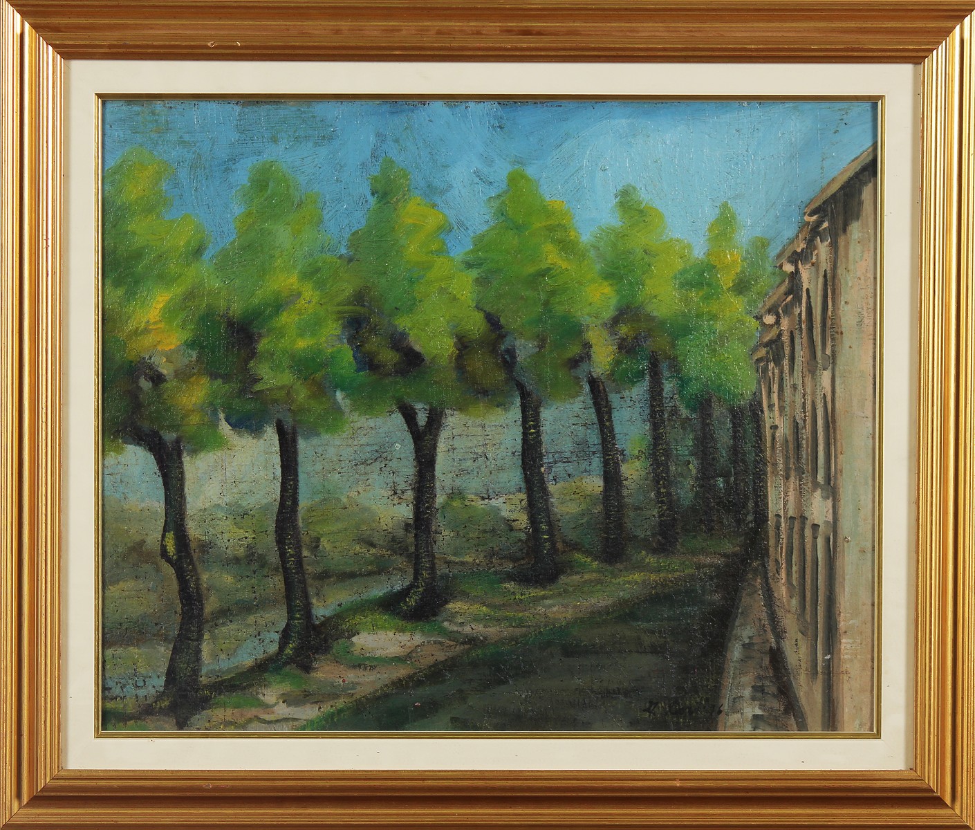 D'ACCARDI GIANRODOLFO (1906 - 1993) Alberi e casa. Olio su faesite. Cm 55,00 x 45,00. Firma e anno in basso a destra. Cornice presente