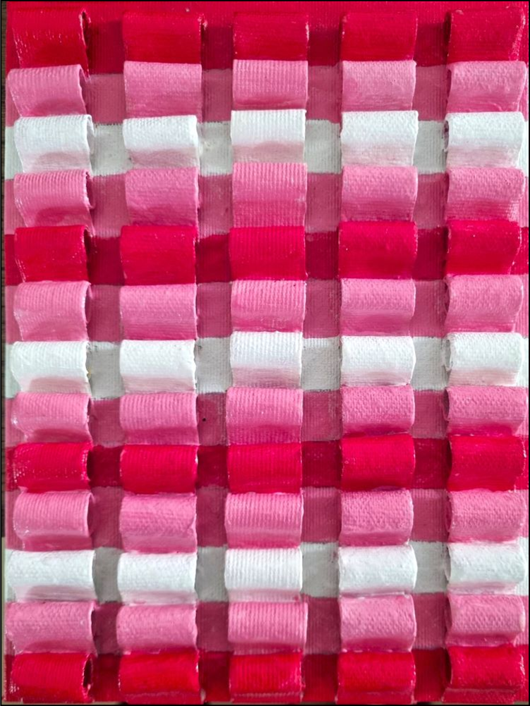 FASANO FRANCESCO Fasano 1966 "Risvolti 3 luci" Tele arrotolate sovrapposte su pannello telato cm 15x20 del 2020. Al verso firma, titolo, data, tecnica e misure.