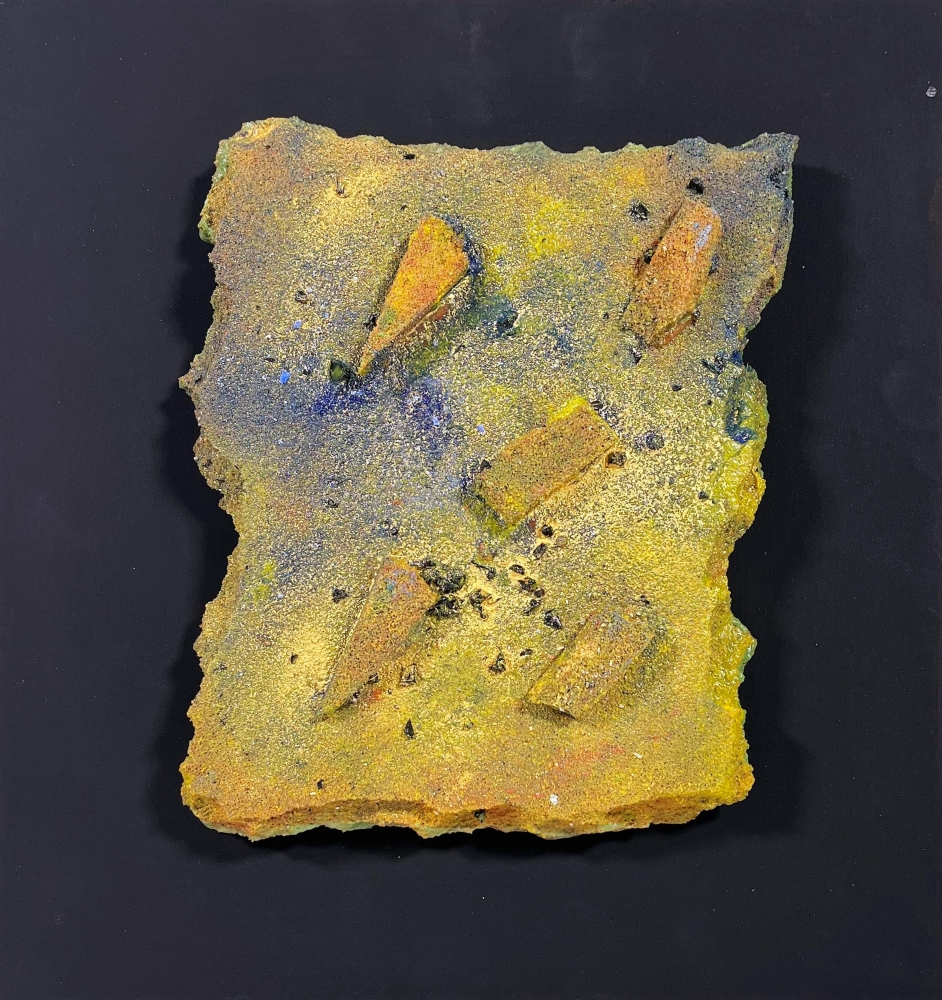 NUCARA RENZO Crema 1955 "Reperto" Poliuretano, pigmenti e granulati applicati su tavola cm 23x28 (tavola cm 35x40) del 1994. Firma, data, timbro e numero d'archivio al retro. Opera archiviata. Autentica dell'Artista su foto.