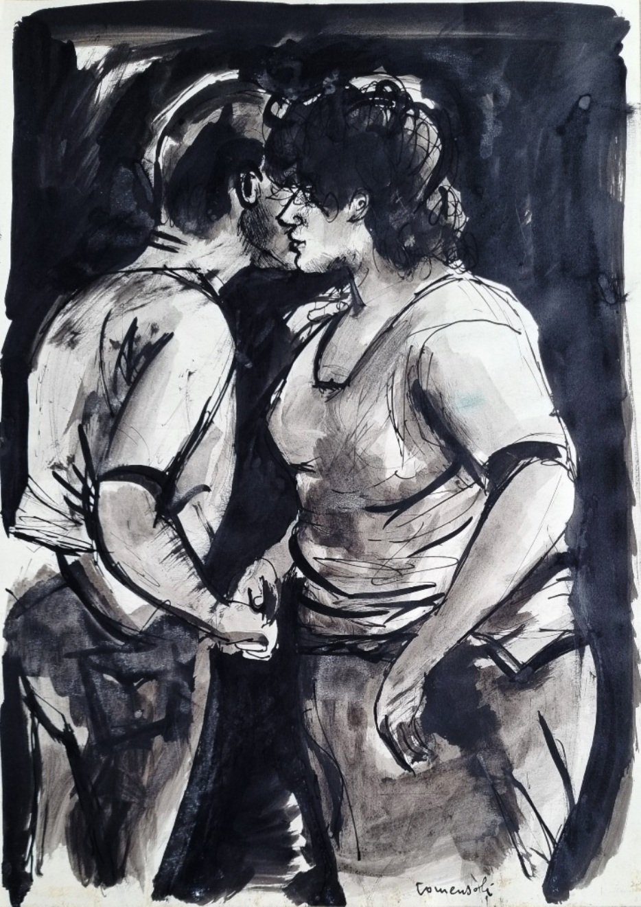 COMENSOLI MARIO Lugano 1922 - Zurigo 1993 "Commiato" China acquerellata su cartoncino cm 30x42. Firmata sul fronte in basso a destra.