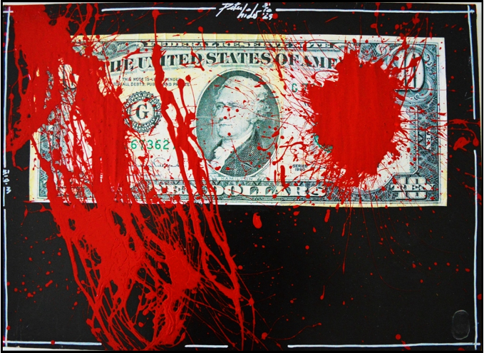 HIDE PETER Tradate 1965 "Blood Money" Tecnica mista su tela in teca di plexiglass cm 70x50x4 del 2013. Firmata, datata ed intitolata al retro. Autentica su foto a cura dell'Artista. Opera esposta presso il Museo Bodini nel 2015.