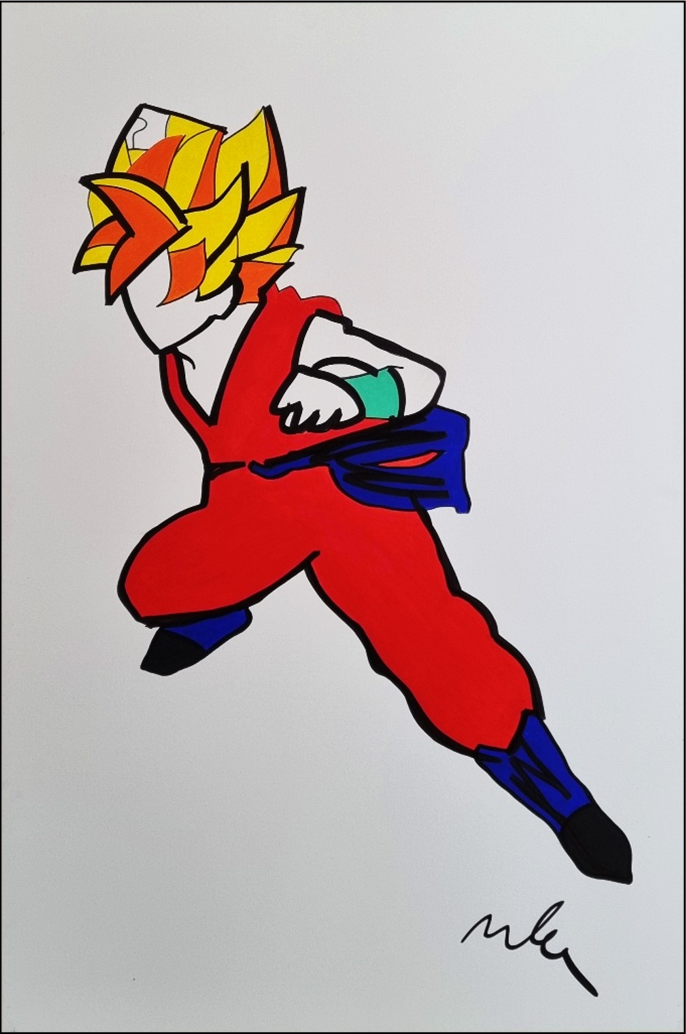 LODOLA MARCO Dorno 1955 "Goku" Acrilici e smalti su tela cm 100x150 del 2014. Firmata sul fronte in basso a destra e al verso. Archivio su foto a cura dell'Archivio Generale Marco Lodola.