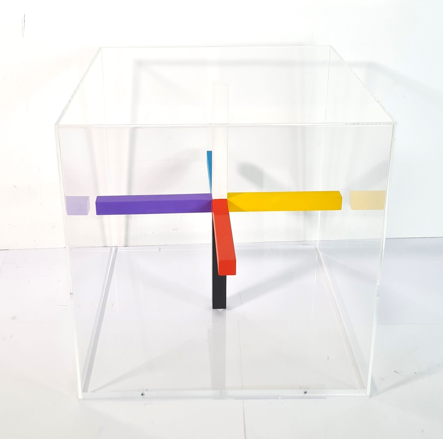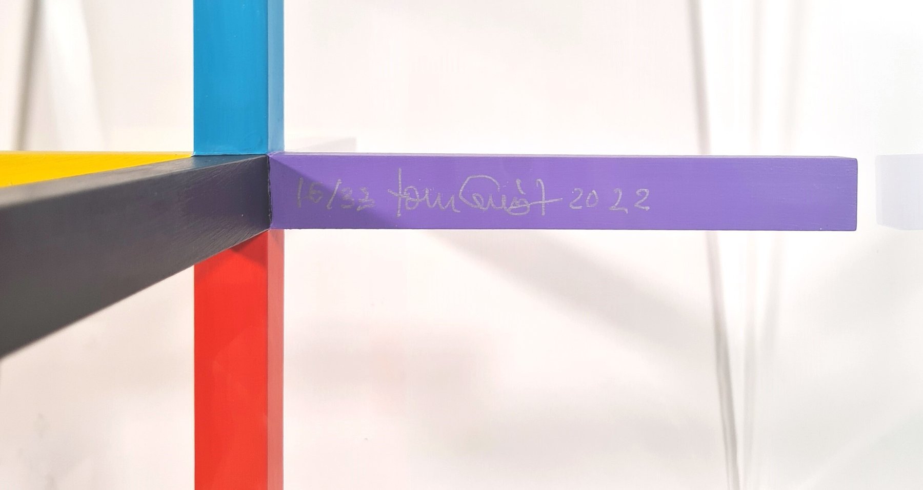 TORNQUIST JORRIT Graz 1938 - Bergamo 2023 "Modulo XYZ" Acrilico su legno cm 34x34x34 del 2022. Multiplo, esemplare 16/33. Firmato, datato e numerato a mano dall'Artista nella parte inferiore del segmento viola. Opera registrata presso l'Archivio Tornquist. Certificato di autenticità ed archiviazione a cura del Maestro.