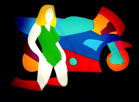 LODOLA MARCO Dorno 1955 "Moto" Scultura luminosa in perspex e neon cm 70x48x12, del 2007. Sul retro firma, titolo, dimensioni e data. Autentica su foto a cura dell'Artista.
