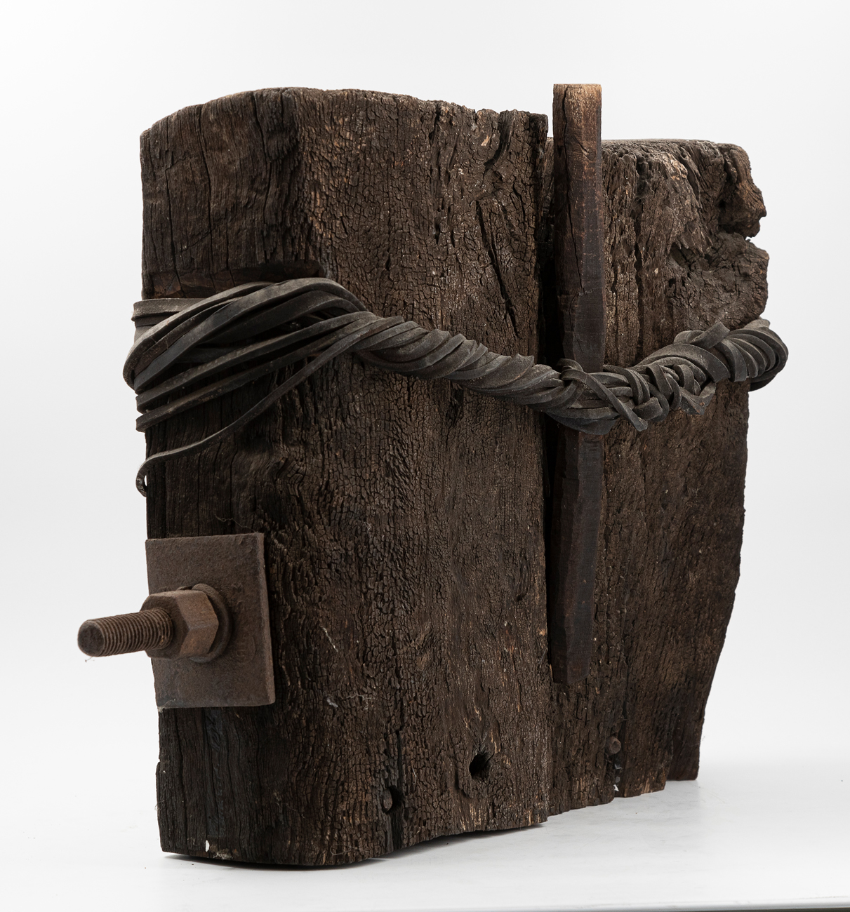 Scultura in legno, corda e ferro