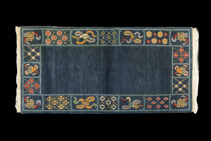 Tappeto tibetano a fondo blu con decori floreali entro riserve, Tibet inizi XX Sec.