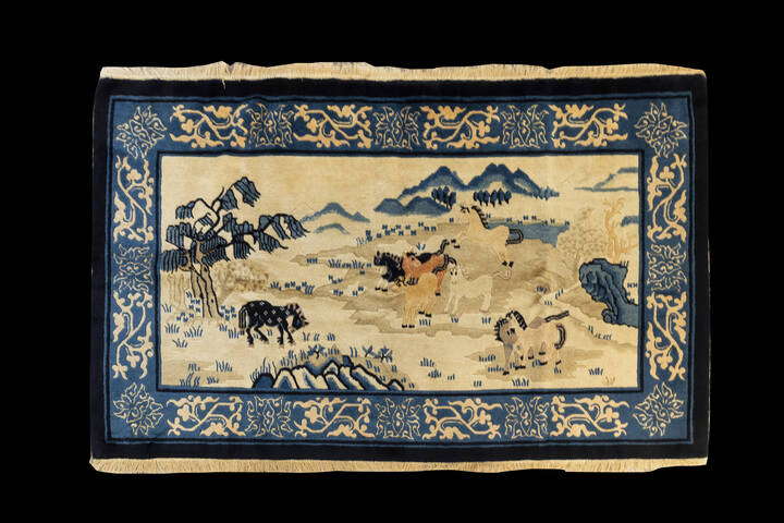 Tappeto Pechino decorato con cavalli nei campi, Cina, Repubblica XX Sec.