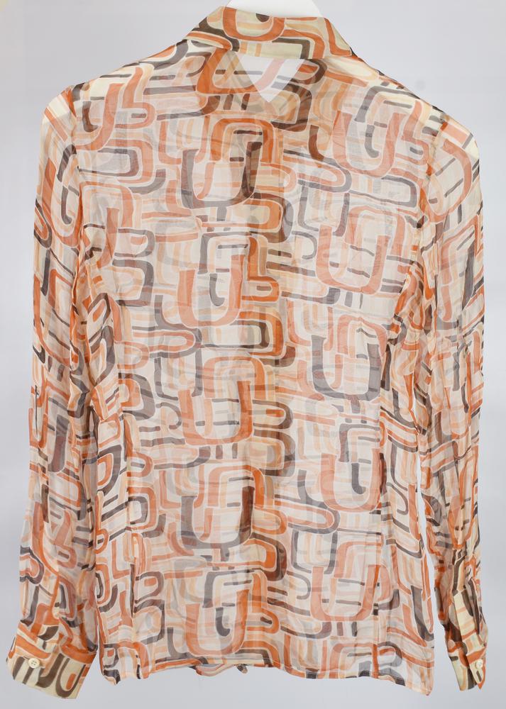 Camicia in seta con stampa iconica FW 1996/1997. Taglia 40. Prodotto in Italia. Lievi difetti ma condizioni generali molto buone. Ben conservato.