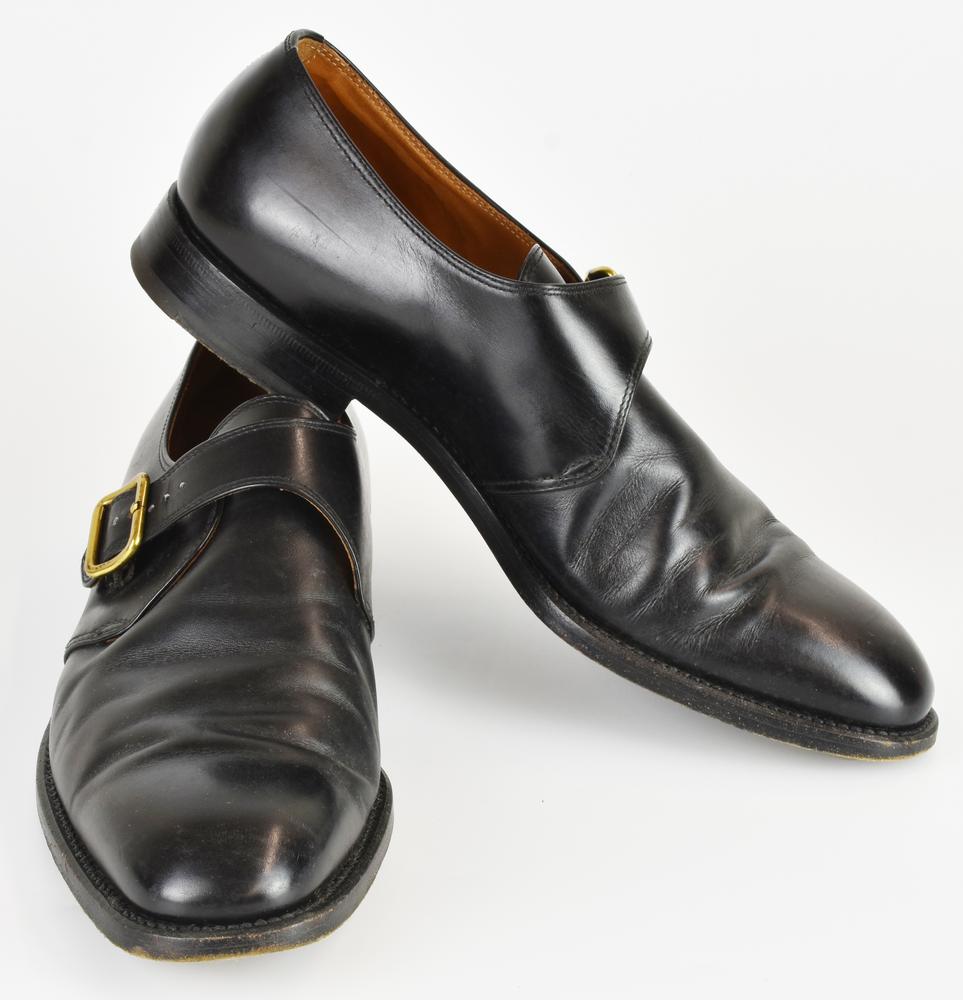 Black leather monk strap shoes, handmade. Size 10. Signs of use but in good overall condition. Well preserved.