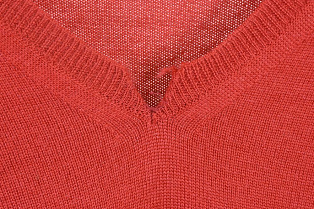 Maglioncino da uomo con scollo a V. Manca etichetta di composizione, probabilmente in cotone. Taglia 52. Difetti. Discretamente conservato.