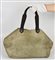 Borsa modello shopper in tessuto sintetico con inserti in pelle e doppi manici. Chiusura centrale magnetica. Interno in tessuto organizzato in un unico vano con tre taschini laterali, due piatti e uno con cerniera. Cm 40,00x26,50x14,50. Altezza coi manici cm 45,00. Corredata di dustbag originale. Prodotto in Cina. Interno con macchie. Ben conservata.