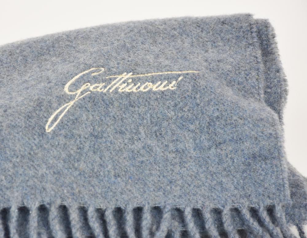 Scarf, likely in wool, with fringes. Dimensions: 134.00 x 29.50 cm. Composition label is missing. Perfectly preserved.
