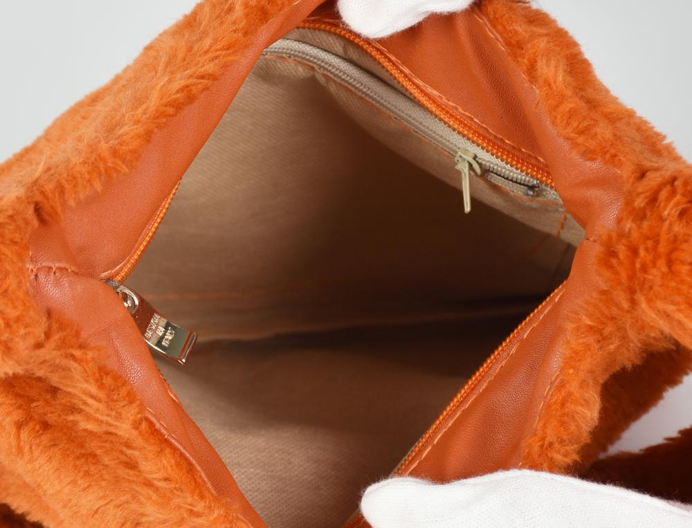 FAUX FUR BAG DESCRIPTION: Shoulder bag in orange faux fur. Central zipper...