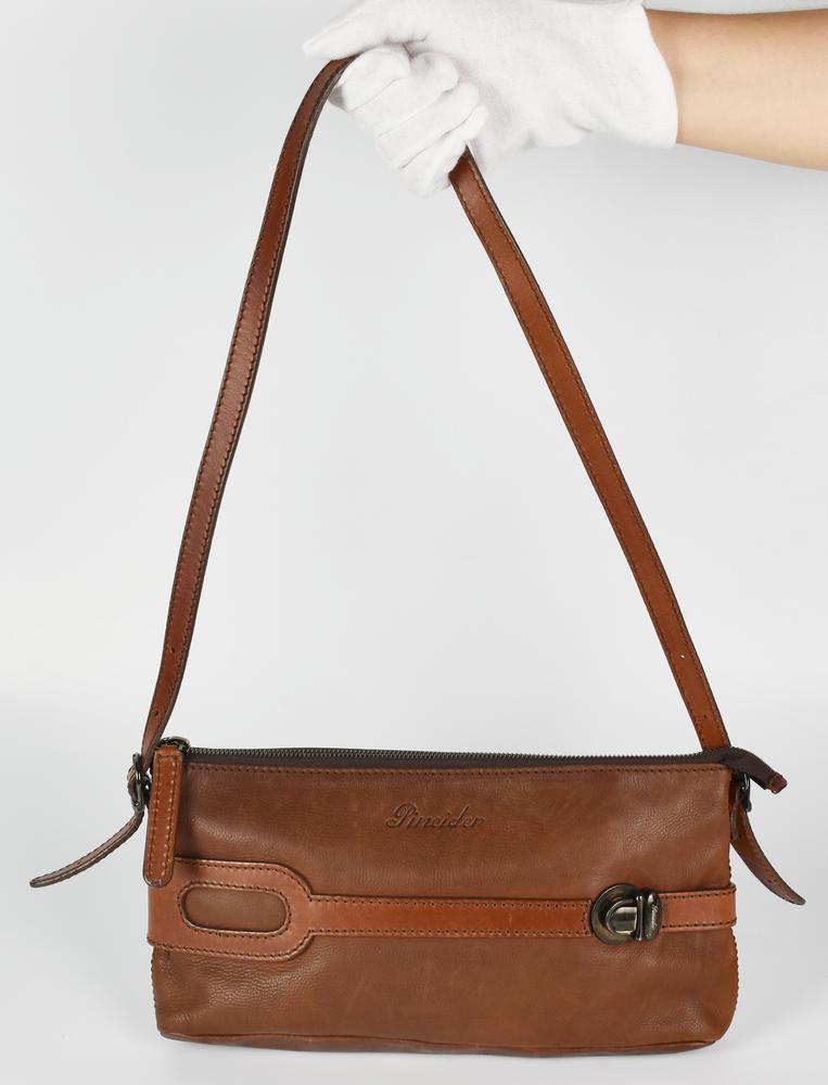 Pineider LEATHER BAG DESCRIPTION: Brown leather shoulder bag with adjustable...