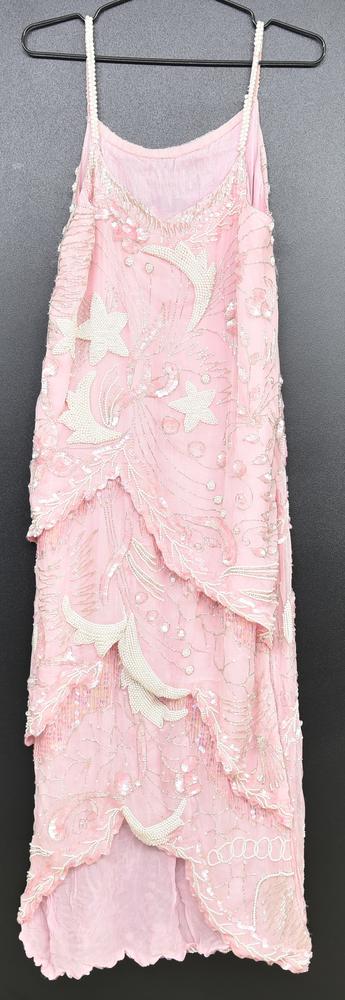 PINK SEQUINS AND PERLS DRESS DESCRIPTION: Tailor-made pink sequin and pearls...