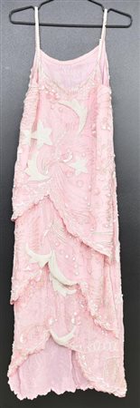 Abito rosa con decoro di paillettes. Manca etichetta di taglia e composizione. Made in Italy. Lavorazione sartoriale. Vista la natura dell’articolo non si escludono piccole mancanze. Ben conservato.