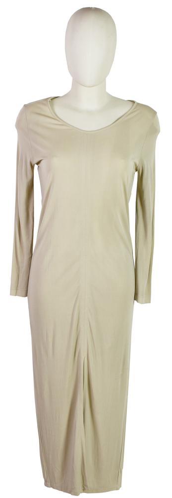 SAVERIO PALATELLA abito lungo color sabbia con spacco anteriore. Taglia 42 IT. Ben conservato.