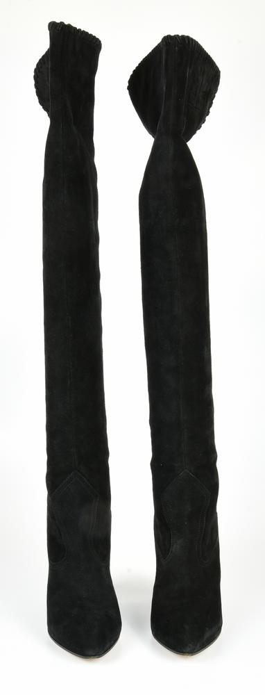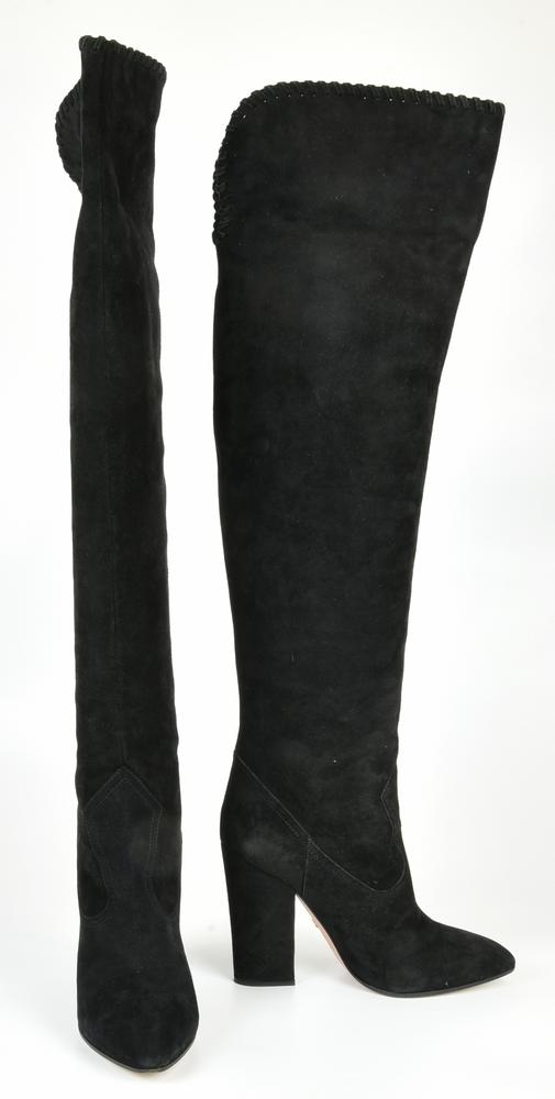 Cuissard in suede neri con interni in pelle. Tacco quadrato di 11 cm. Taglia 39 IT. Presentati con scatola, dustbag originale e scontrino di acquisto. Prodotti in Italia. Lievi segni d’uso non compromettono le eccellenti collezioni generali. Ben conservate.