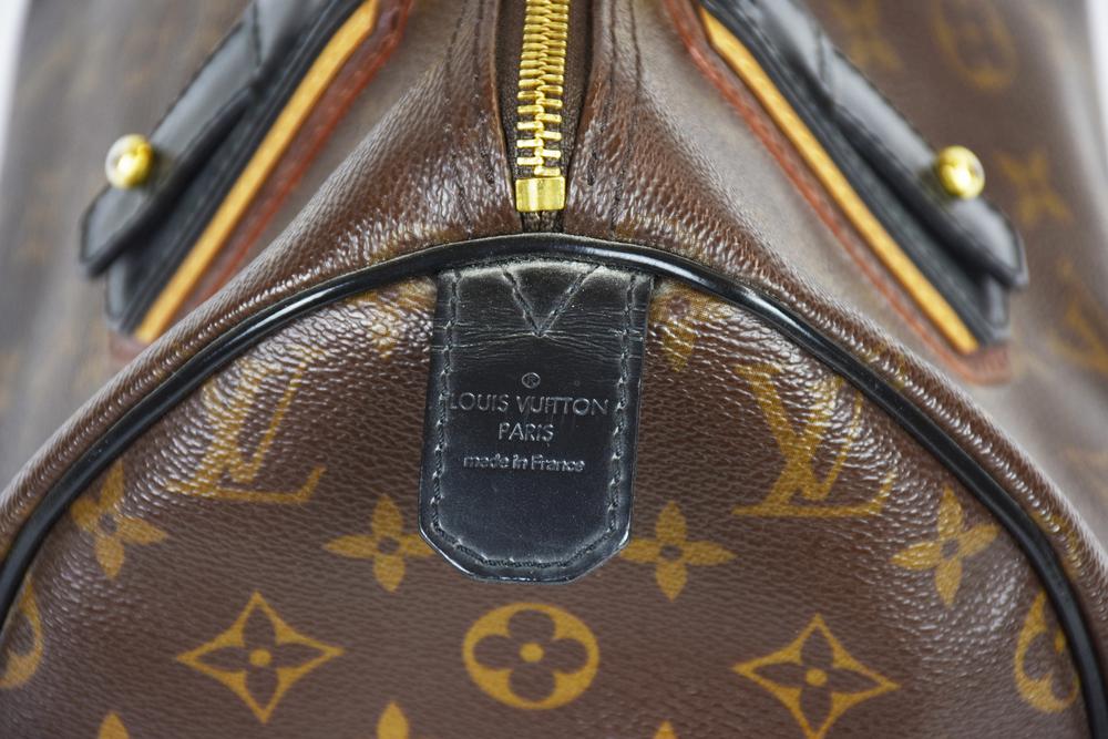 Limited Edition Speedy Black Mirage in monogram canvas with a gradient effect. Black patent leather details and double handles. Fabric-lined interior organized in a single compartment with a flat side pocket. Gold-tone metal hardware. Dimensions: 30.00 x 24.50 x 17.00 cm. Handle drop: 31.00 cm. Made in France. Minor signs of use on the interior do not affect the excellent overall condition. Well-preserved.