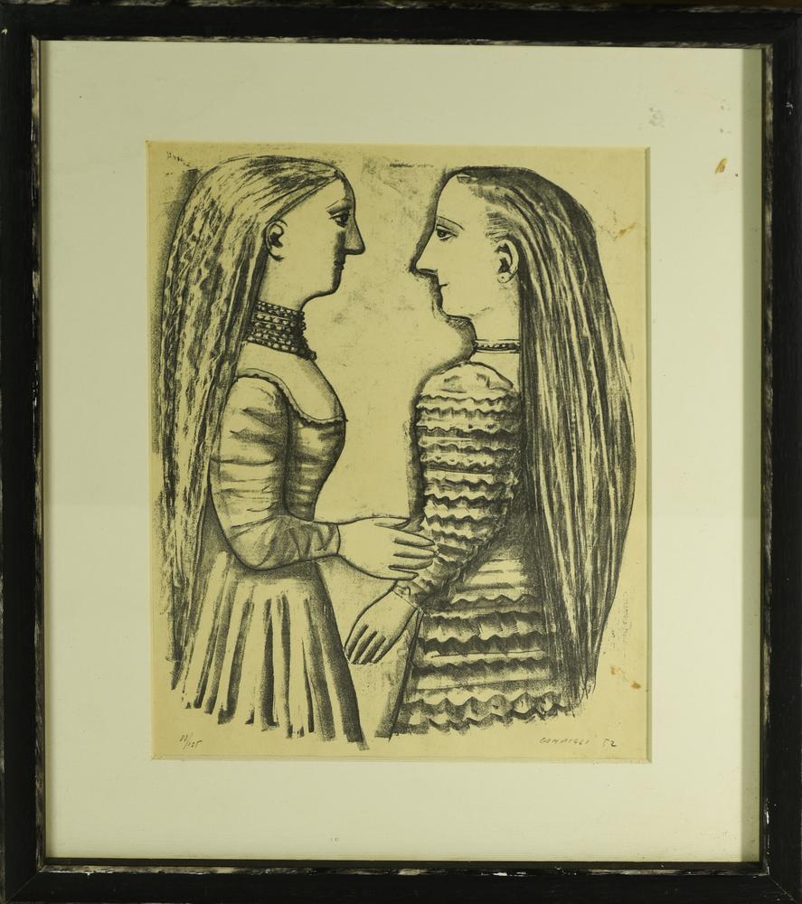 Massimo Campigli DUE FIGURE riproduzione fotolitografica su carta, cm 27x21...